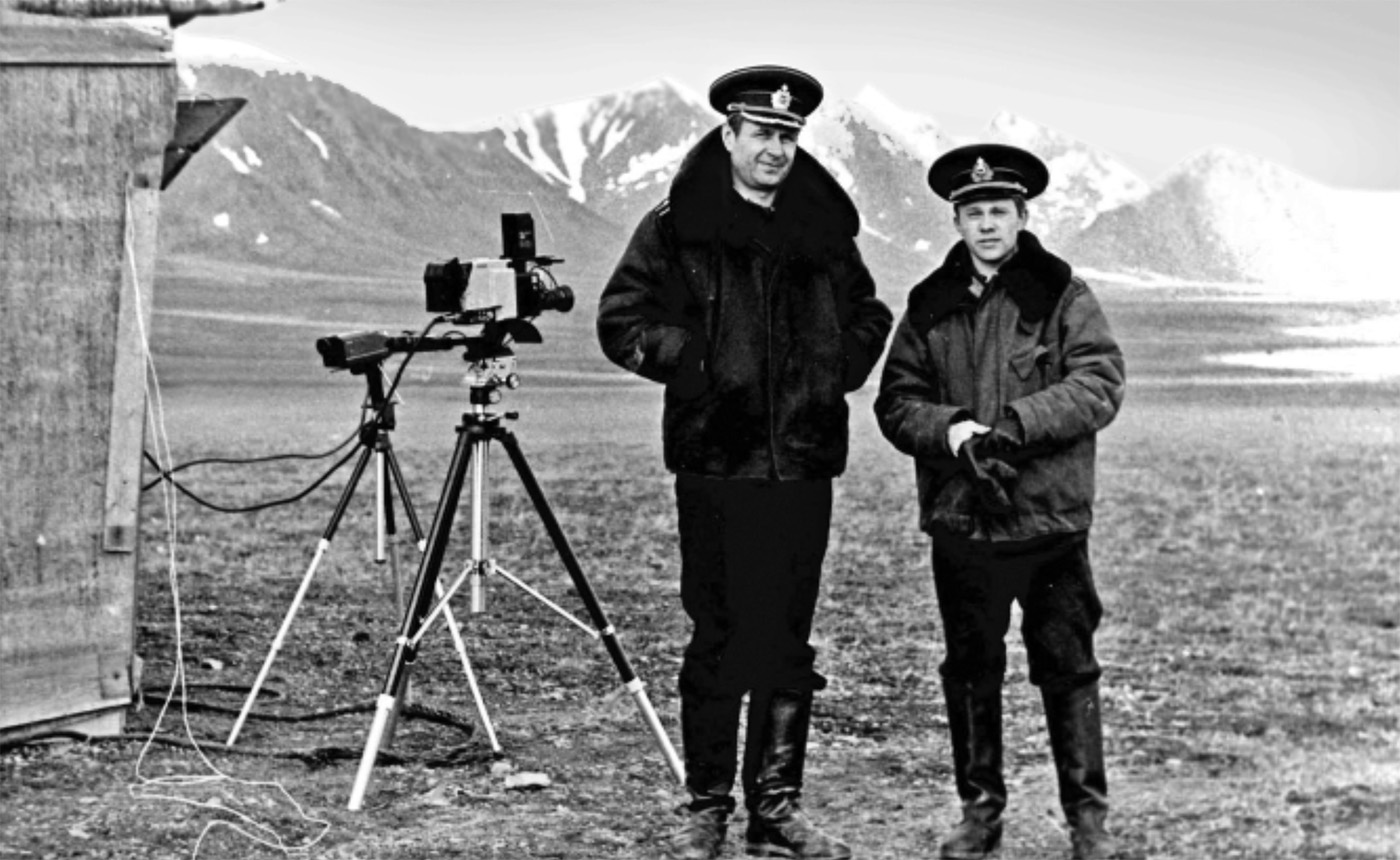 С начальником 4-го отдела В.П. Думиком на пункте регистрации внешних явлений опыта «Аргон». Северный остров Новой Земли, пролив Маточкин Шар. 1987 г.