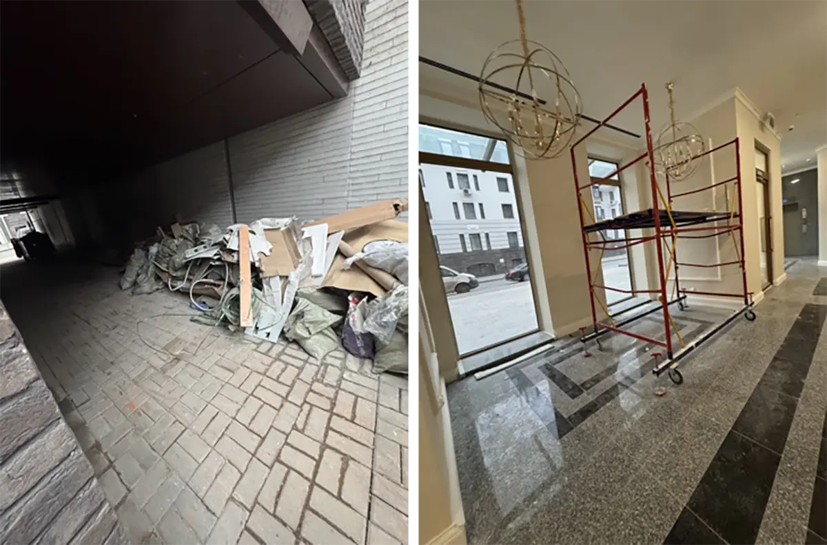 В сентябре на место выезжали представители Жилинспекции, после чего уже не застройщику, а управляющей компании (ООО «МСК МКД», согласно базе «Спарк» бенефициар у УК и застройщика — один и тот же человек) было выписано предписание. Из него следует, что работы на объекте по-прежнему ведутся. 2 декабря 2025 года на место выезжали уже специалисты Мосгосстройнадзора и тоже констатировали: «работы по отделке мест общего пользования не завершены».