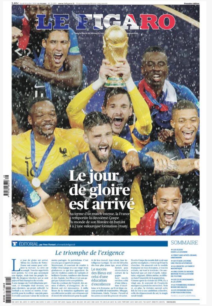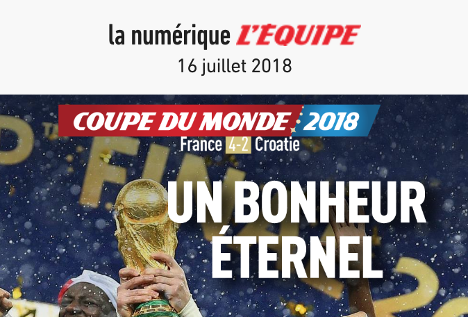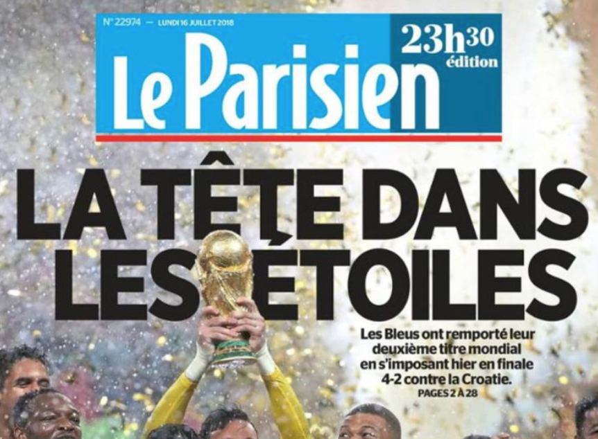 15 июля на стадионе «Лужники» в Москве сборная Франции победила Хорватию со счетом 4:2 и выиграла Чемпионат мира по футболу 2018 года. RTVI выяснил, как французские СМИ встретили победу своей команды, а хорватские — поражение и выбрал самые интересные заголовки.