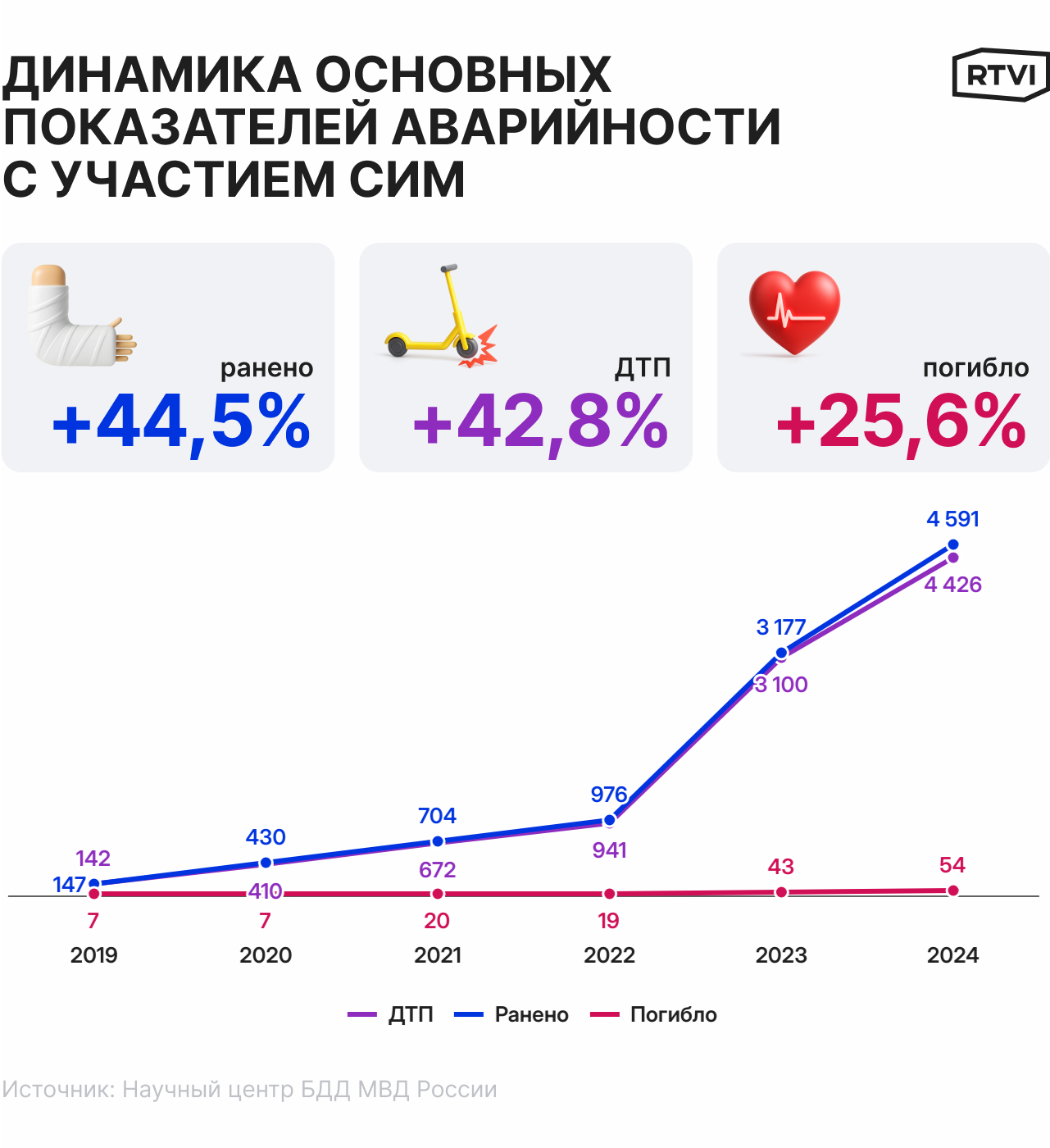 «Безусловно, мы все сфокусированы на том, чтобы аварий, тем более с летальными исходами, становилось все меньше и меньше. Но хотелось бы предостеречь от демонизации средств индивидуальной мобильности. Если соотнести цифры с числом поездок на СИМ или ростом флота, то аварийность окажется числом со множеством нулей после запятой», — сообщила RTVI директор Ассоциации операторов микромобильности Ксения Эрдман».