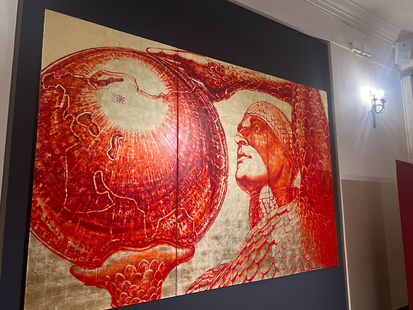 Выходя из зала, невольно оглядываешься на мерцающий в полумраке лик. Выставка закончится, картины вместе с «буханкой», встречающей посетителей на «арт-нуле», уедут, но это ощущение — что молитва может прорасти даже сквозь оружейный металл — кажется, остается с тобой надолго.
