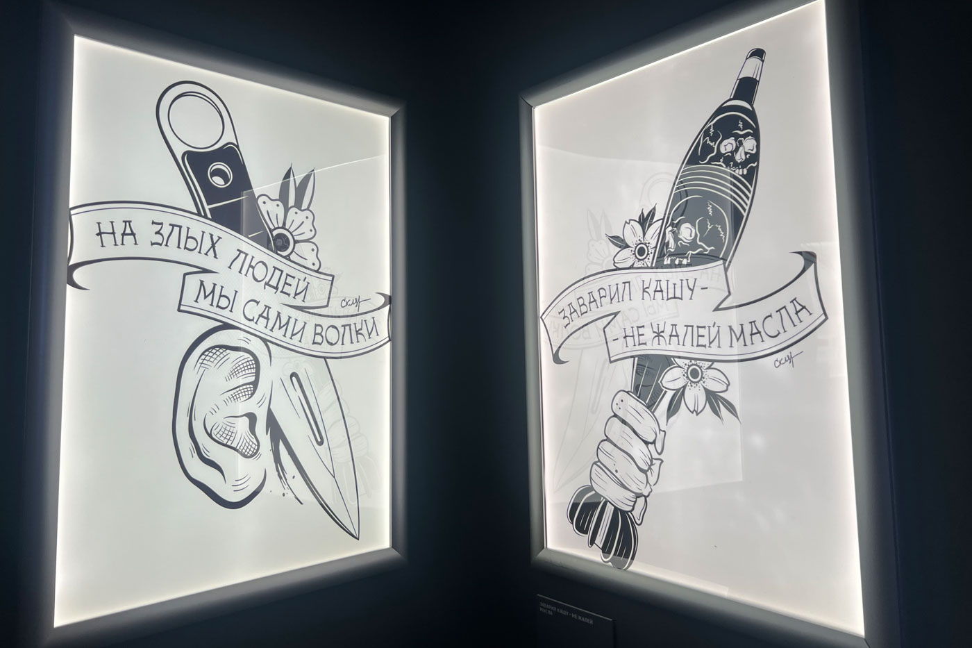 Во Всероссийском музее декоративного искусства открылась выставка «Около войны. Люди. Истории. Знаки». Организаторы говорят: это рассказ о войне голосами разных людей, чьи судьбы оказались вплетены в исторический узор. В экспозиции представлены как советские плакаты времен Великой Отечественной войны, так и картины современных художников — наблюдавших боевые действия на Украине и участвовавших в них.