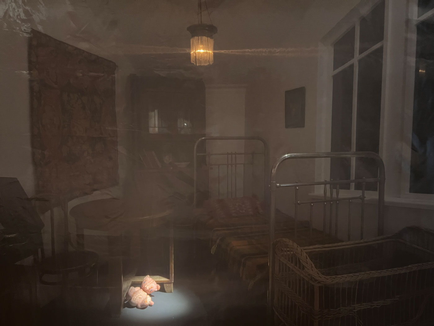 В углу зала, за пленкой, скрыта комната. В ней воссоздан интерьер квартир 2010-2020 годов. На столе компьютер, двухъярусная кровать. На стене постеры. В соседнем зале тоже есть комната. Кровать в ней металлическая. Здесь есть проигрыватель, детская кроватка и мягкая игрушка под деревянным столом. Старенький комод, на котором стоят книги и тарелки. Это интерьер квартир 40-х годов. Задумка выставки в том числе состоит в том, чтобы показать преемственность поколений русских воинов. Именно из такой, как эта комната с металлической кроватью, деды отправлялись на войну с фашистами. А из современных квартир их потомки вставали на битву за Донбасс.