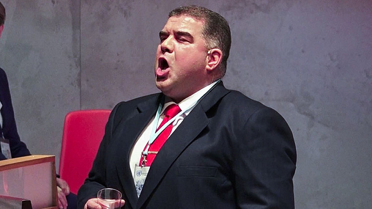 Так и глубже, но так и понятнее: бегущей строкой вперемежку с фабулой Верди — последние международные известия. На авансцене — узнаваемые типажи из выпусков новостей. Сошедший с ума царь Набукко ведет борьбу с иноверцами под лозунгом: «Ассирия в первую очередь». Верховный иудейский жрец Захария, облачившись в пацифистские одежды, позирует для селфи с мигрантами. Большая политика, еще большие войны и миллионы жертв из числа маленьких людей.