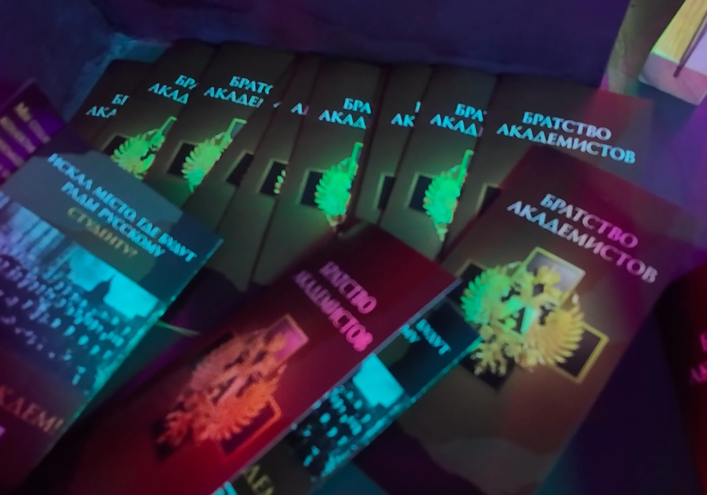 На одной из стоек лежат буклеты студенческого движения академистов. Интересуюсь у их представителей, что это такое. «Это движение, которое объединяет студентов консервативных, полумонархических взглядов. Оно учит не стыдиться традиций России и ее культуры», — рассказывают академисты.