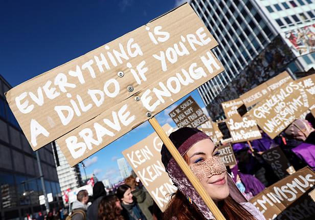 На улицах Берлина тысячи демонстрантов, во главе с колоннами осчастливленных новым праздником, но все еще недовольных феминисток. А через пару часов тут собираются и вовсе взвыть. Акция «100 секунд женского крика» — вместо лозунгов, ясных и так каждой немке: против сексизма, домашнего насилия, преград для абортов — за равные с мужчинами зарплаты и шансы на карьеру.