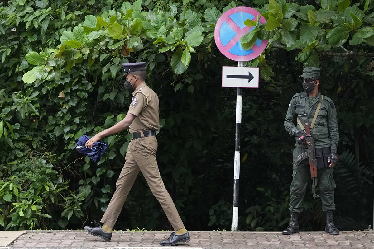 Полицейский и военный на улице в Коломбо. Шри-Ланка, 17 мая 2022 года