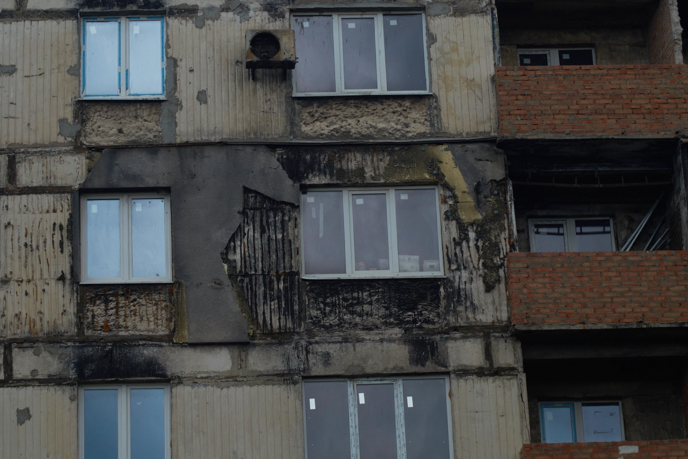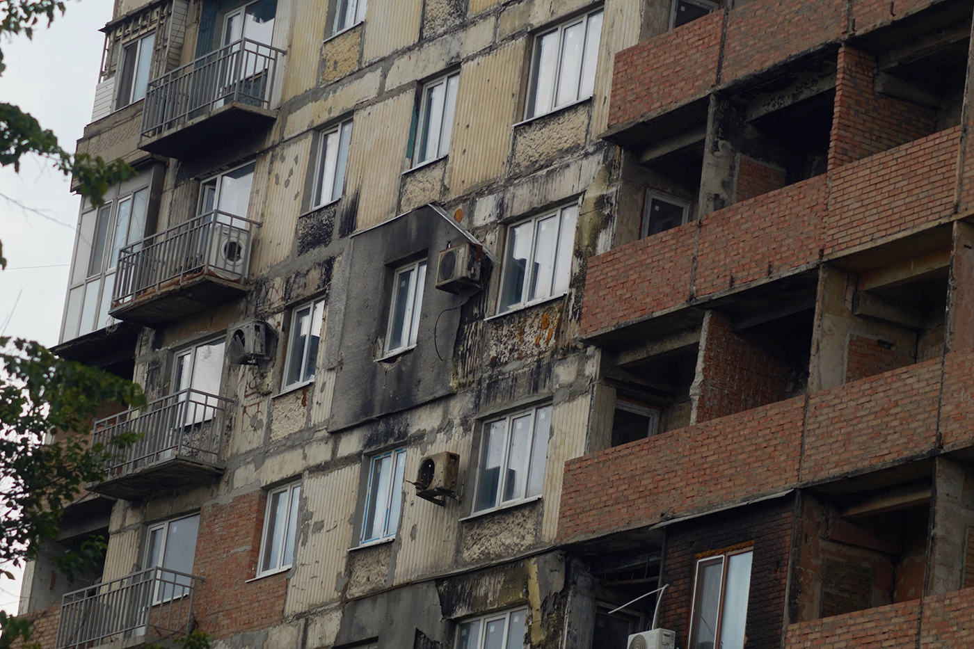 «Тут в соседней квартире все выгорело. Убило трех детей прилетом. У бабушки, которой мы сейчас помогаем, тоже была разрушена квартира, все было черное. Потолок повыпадал, балкон рухнул. Сейчас ей стены сделали, шпаклюем их, — говорит Валентина, тщательно набирая раствор на шпатель. — Очень тяжело тут женщине было. Сидела, плакала. Мы тут и стихи читали с ней, и песни пели. Она немного отошла, повеселела. Понятное дело, что обстановка такая. Но ведь все это уже случилось. Что уж плакать. Это не зависело от нас».