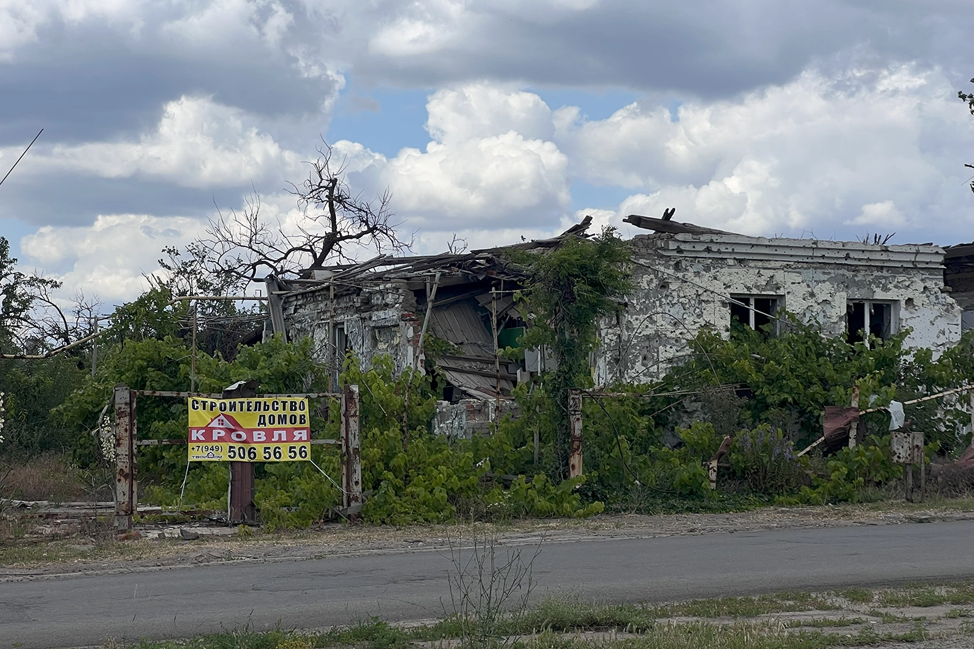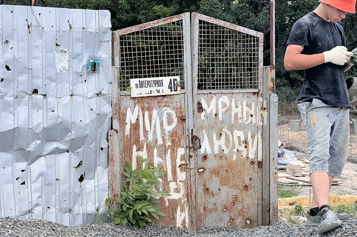 Центр Мариуполя встречает обновленными и яркими фасадами, но, если сворачивать к частному сектору и ходить по окраинам города, картина меняется: кое-где еще видны следы боев. Особенно сильно пострадал частный сектор: здесь рядом с совсем новыми кирпичными домами соседствуют почти полностью разрушенные. На заборах почти у всех надписи: «есть хозяин, мы живы, в городе». И номера телефонов.