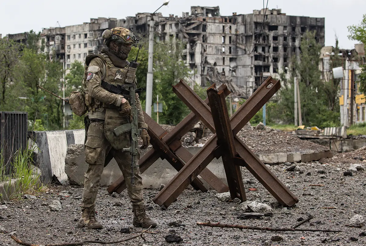 Военнослужащий ЧВК «Вагнер» на одной из улиц Артемовска, 27 мая 2023 года