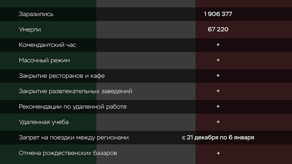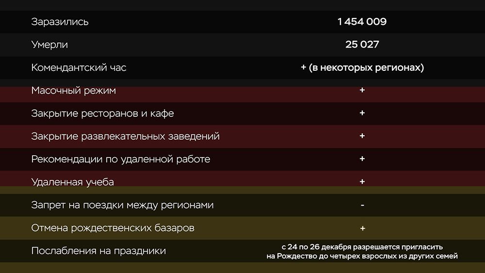 Конец 2020 года Европа и Россия встречают сильным ростом заболевших COVID-19. На время праздников во многих странах ввели дополнительные ограничения. RTVI сравнил, какие меры будут в них действовать на Рождество и Новый год (данные на 18 декабря).