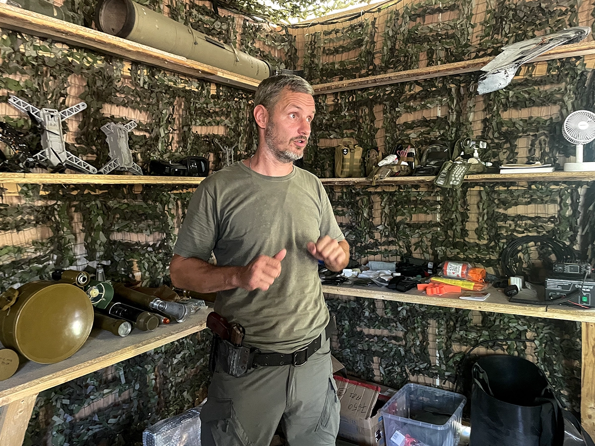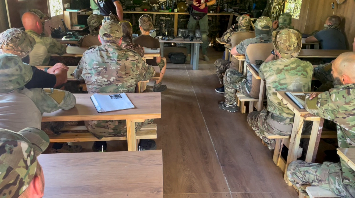 «Сейчас обучаем по большей части по БПЛА коптерного типа, поскольку небо здесь насыщено в основном ими. FPVшки часто используются как камикадзе. Они также могут использоваться как дроны для сбросов — дистанционного минирования. Либо для поддержки боевых соединений на переднем краев — ближе к ЛБС. Когда нужно скинуть радиостанцию, вышедшую из строя, зарядник», — рассказывает инструктор с позывным Сегун.
