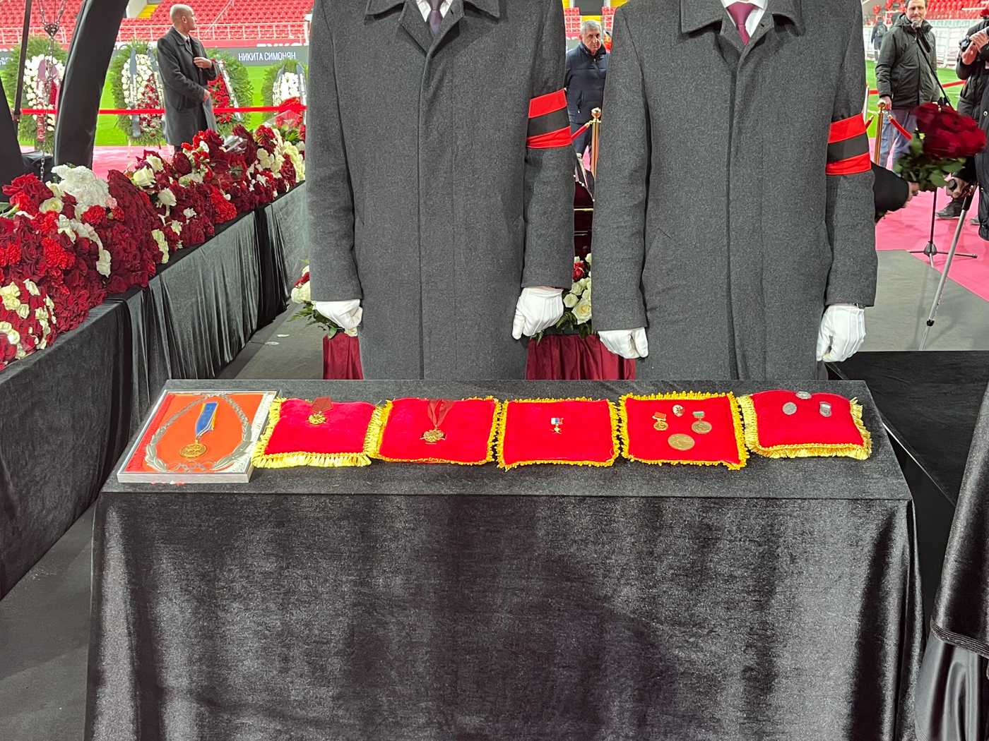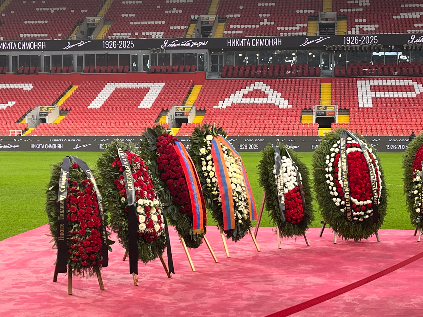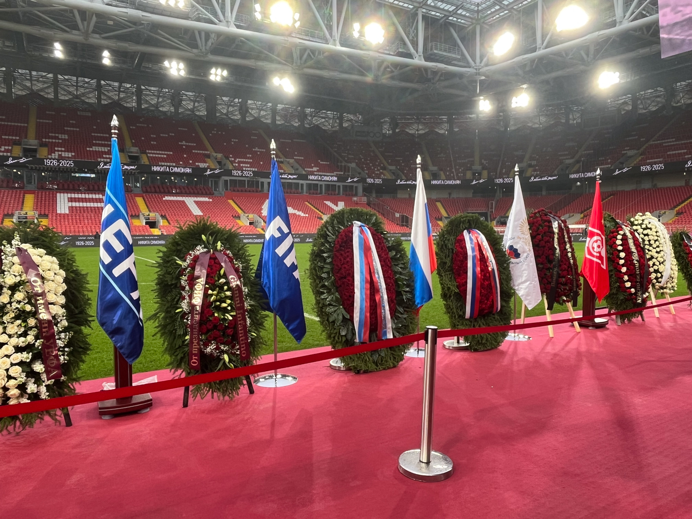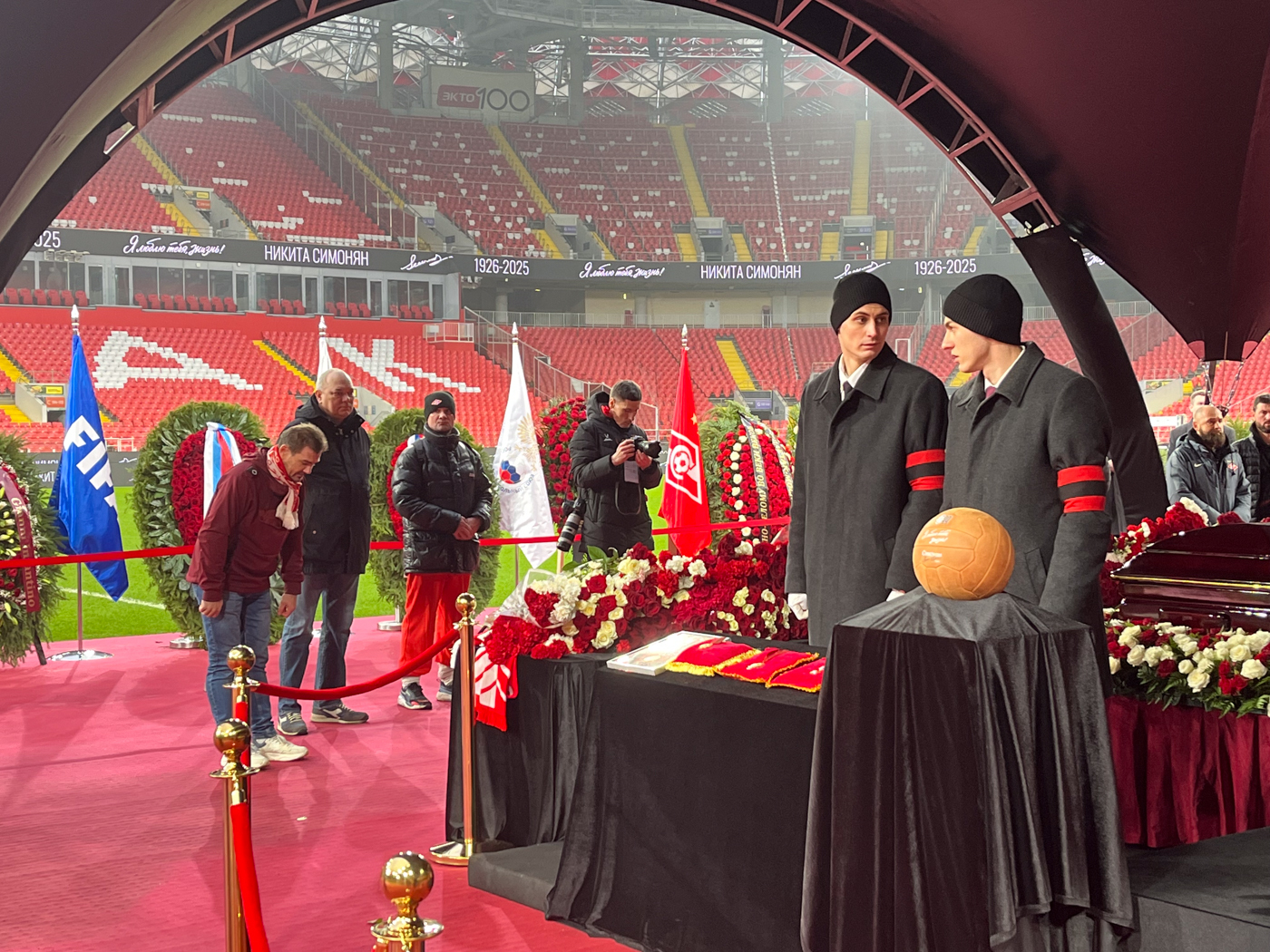 По Симоняну скорбели не только россияне. На арене можно было увидеть венки с флагами как России, так и Армении. Цветы в память о легендарном футболисте прислали из Международной федерации футбола (ФИФА) и Союза европейских футбольных ассоциаций (УЕФА).