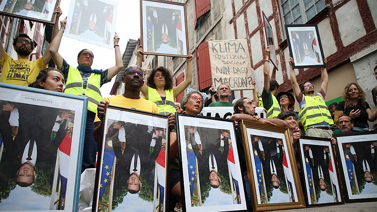 Экоактивисты считают, что обещания Макрона по борьбе с изменением климата и сокращению вредных выбросов не выполняются в полном объеме. Телекомпания France 24 сообщила, что 128 портретов президента Франции позаимствовали в мэриях разных городов в рамках акции «Сними Макрона». По словам активистов, пустые места на стенах, где когда-то были фотографии лидера страны, символизируют его пустые обещания.
