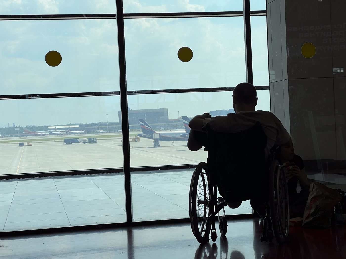 — Ожидать, когда заработает компьютер, — чеканит женщина и отходит к другому сотруднику аэропорта.