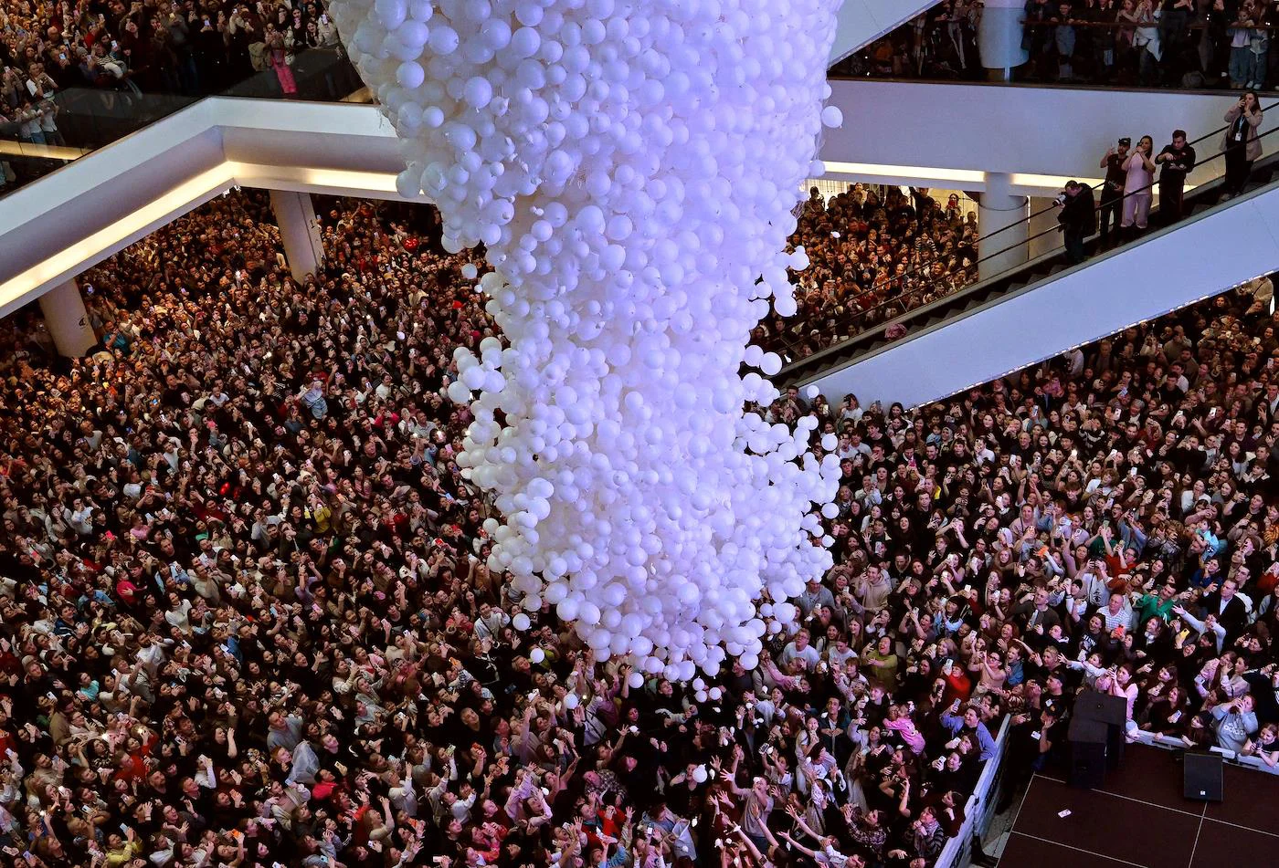 Празднование Дня Святого Валентина в центральном атриуме торгово-развлекательного центра «Ривьера». Москва, Россия
