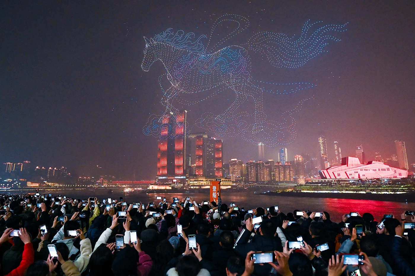 Шоу дронов во время празднования Нового года по восточному календарю в Китае, Чунцин