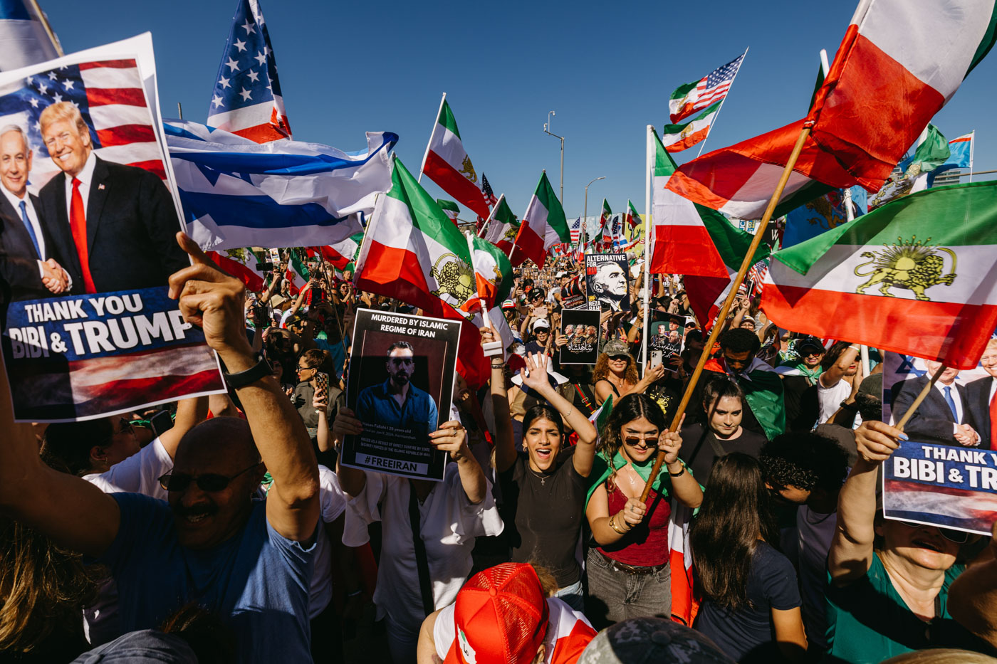 Члены иранской общины празднуют начало военных действий США и Израиля против Ирана, Лос-Анджелес, Калифорния, США, 1 марта 2026 года