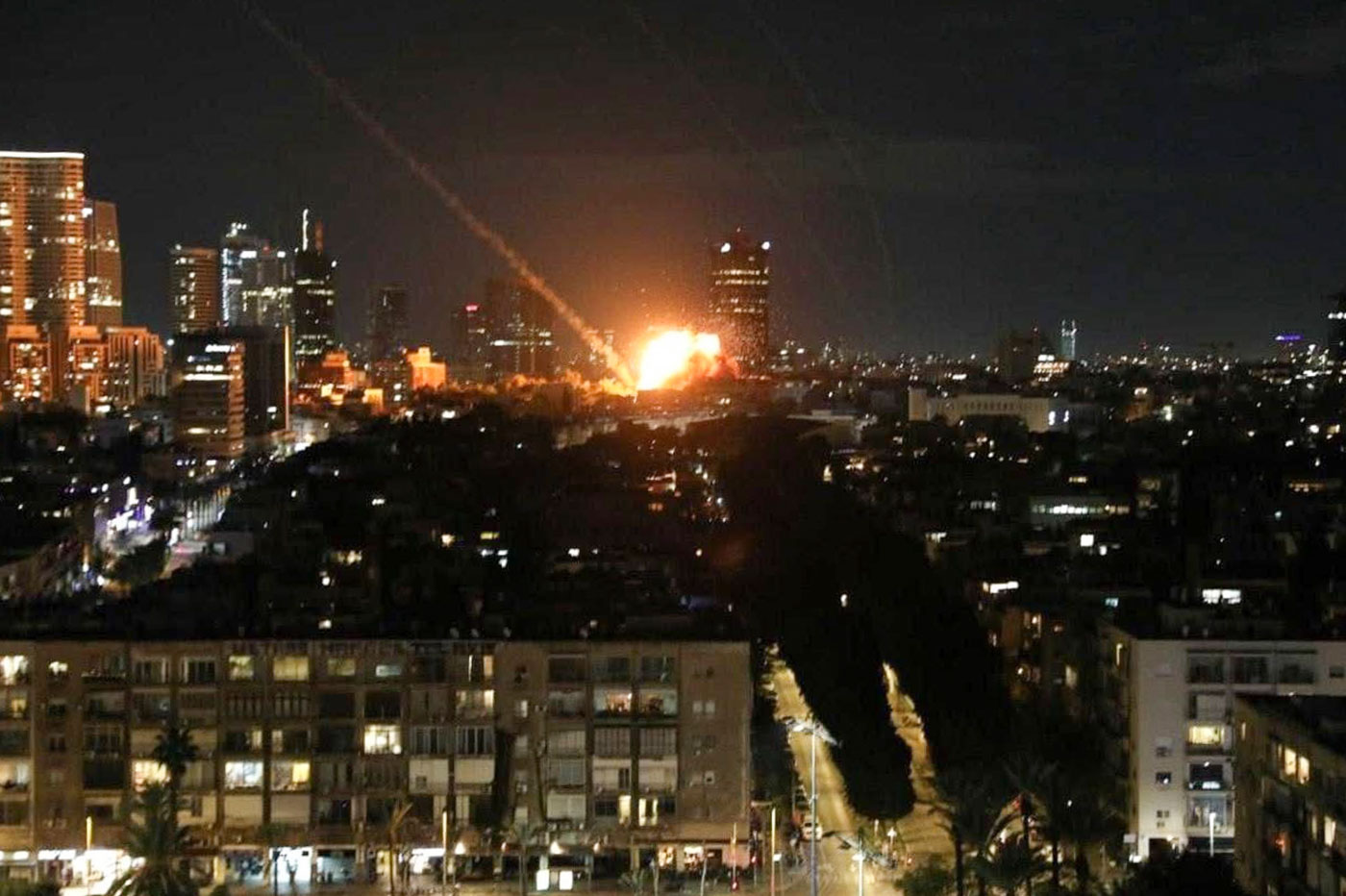 Взрыв от попадания иранской ракеты в здание в Тель-Авиве, Израиль, 28 февраля 2026 года