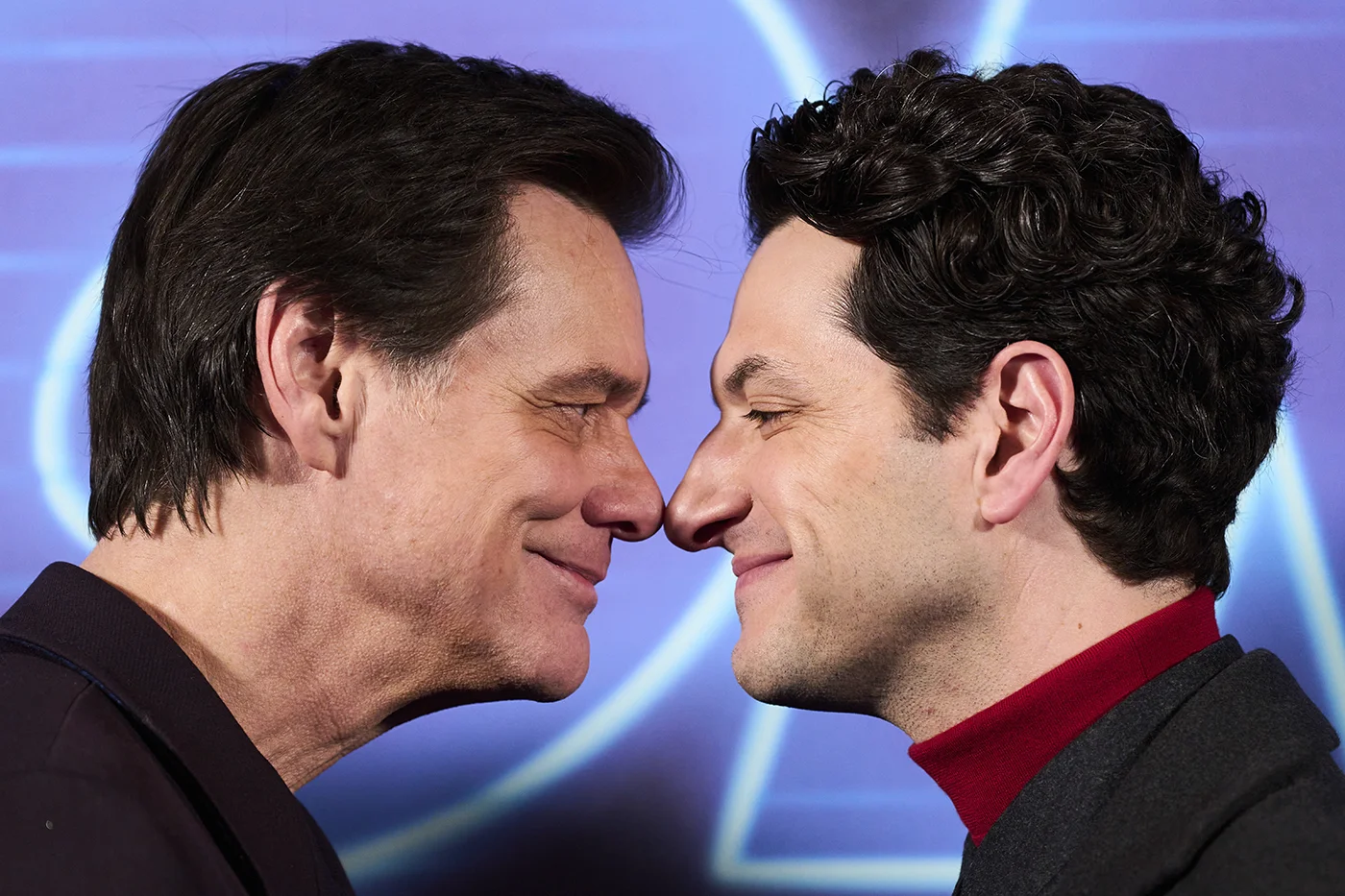 Джим Керри и Бен Шварц позируют на премьере фильма «Соник 3» в Лондоне. Великобритания, 10 декабря 2024 года