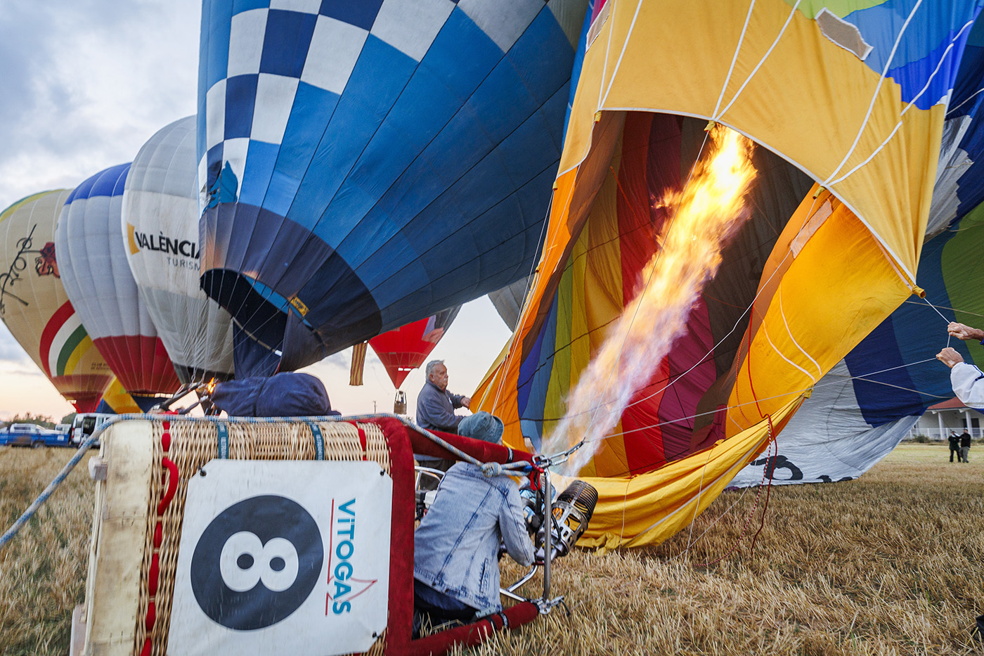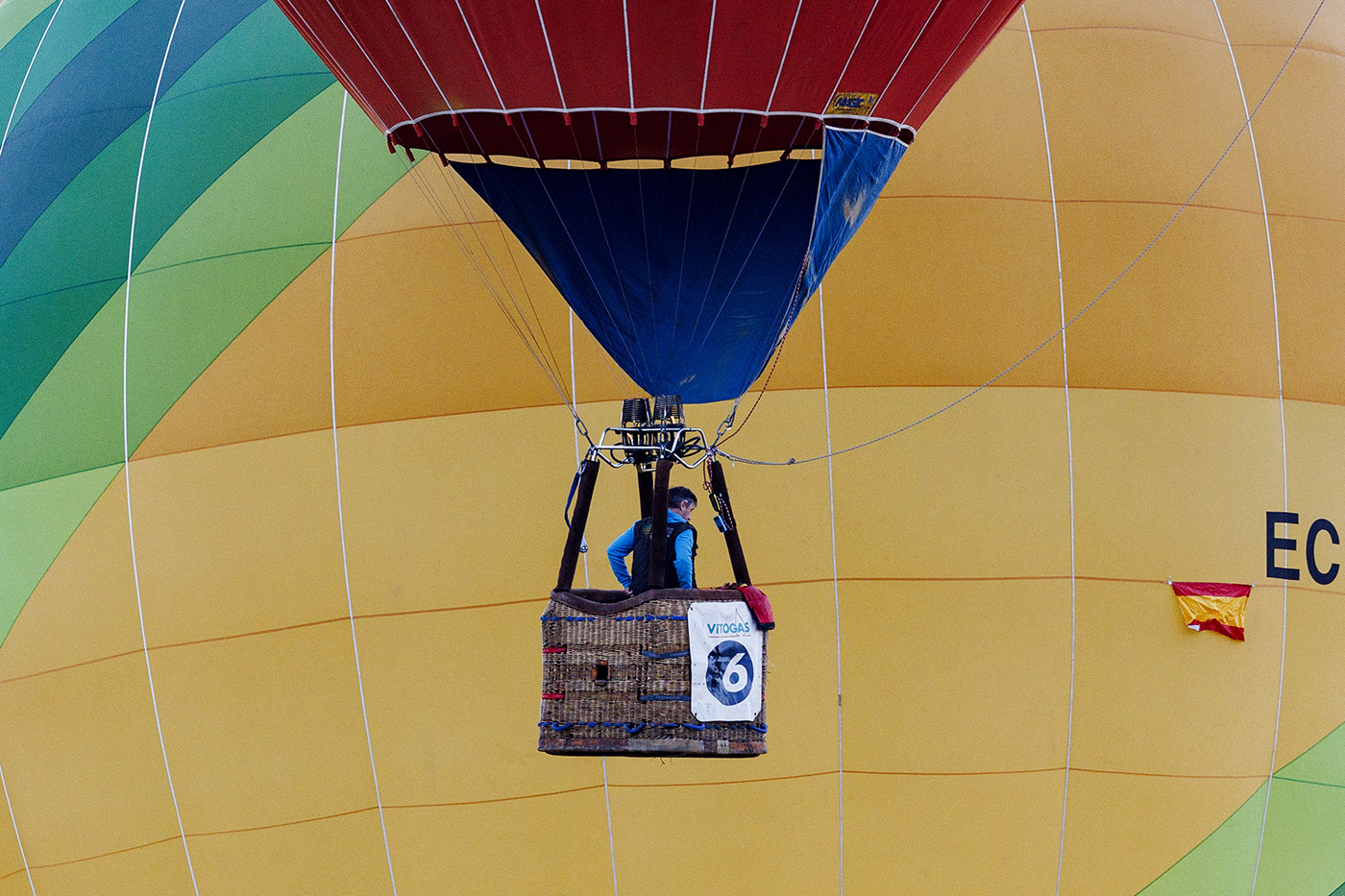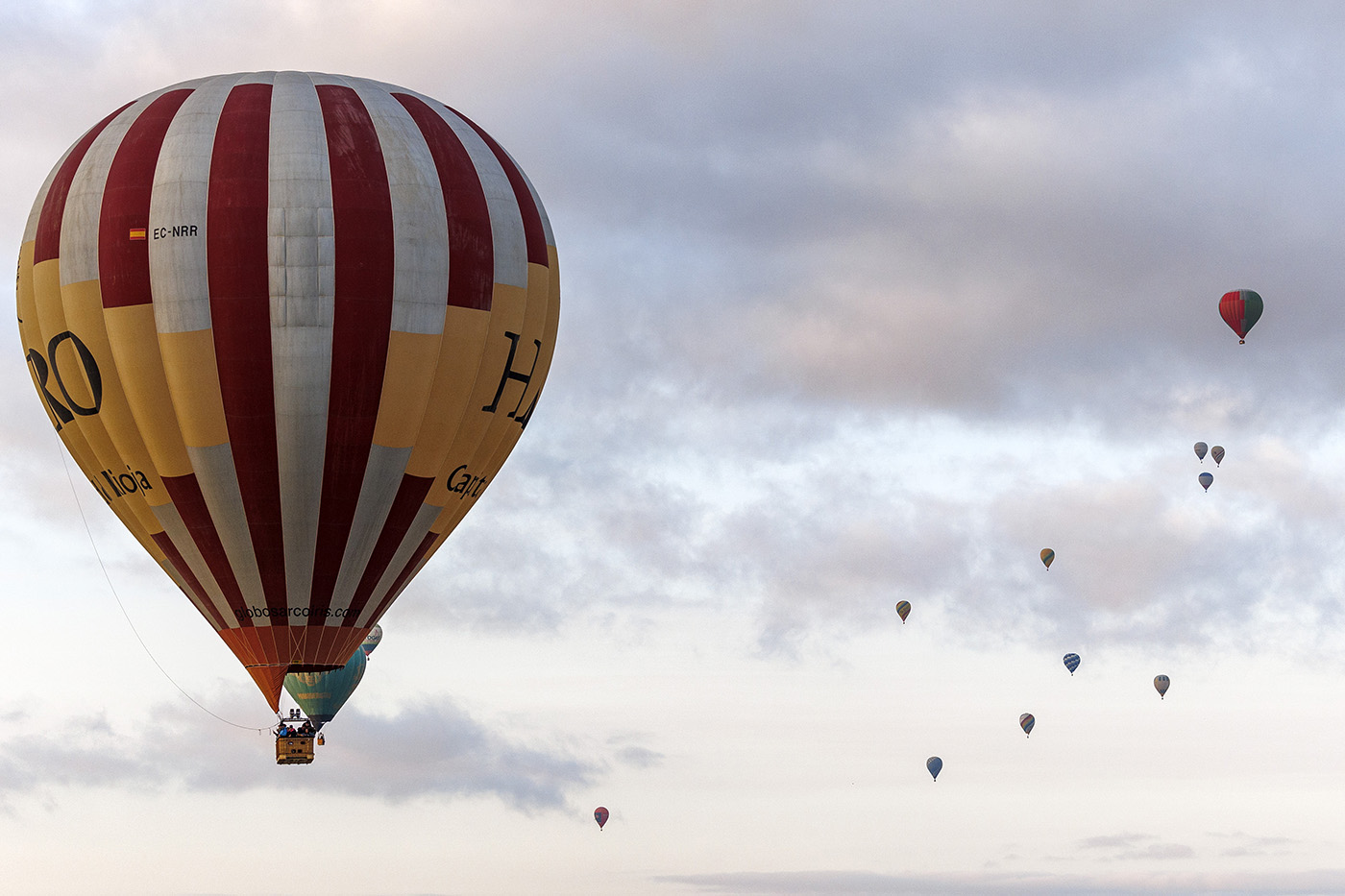 Испания, Ла-Риоха, Аро, 1 августа 2025 года. Воздушный шар на Международной регате воздушных шаров. Город Аро в Ла-Риохе с 30 июля по 3 августа принимает два из самых известных мероприятий в мире воздухоплавания — Чемпионат Испании и международную регату «Город Аро». В соревнованиях примут участие 26 пилотов из Испании, Франции, Швейцарии и Португалии.