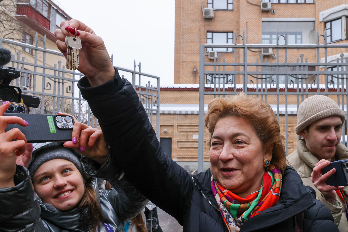 Адвокат Полины Лурье Светлана Свириденко у жилого дома в Ксеньинском переулке, в котором находится квартира певицы Ларисы Долиной. Москва, Россия
