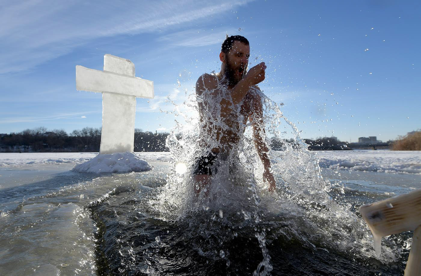 Крещенские купания в проруби на реке Кальмиус в Донецке