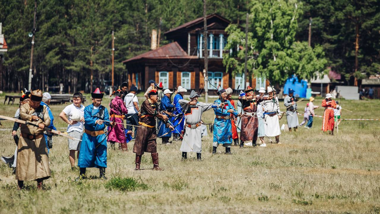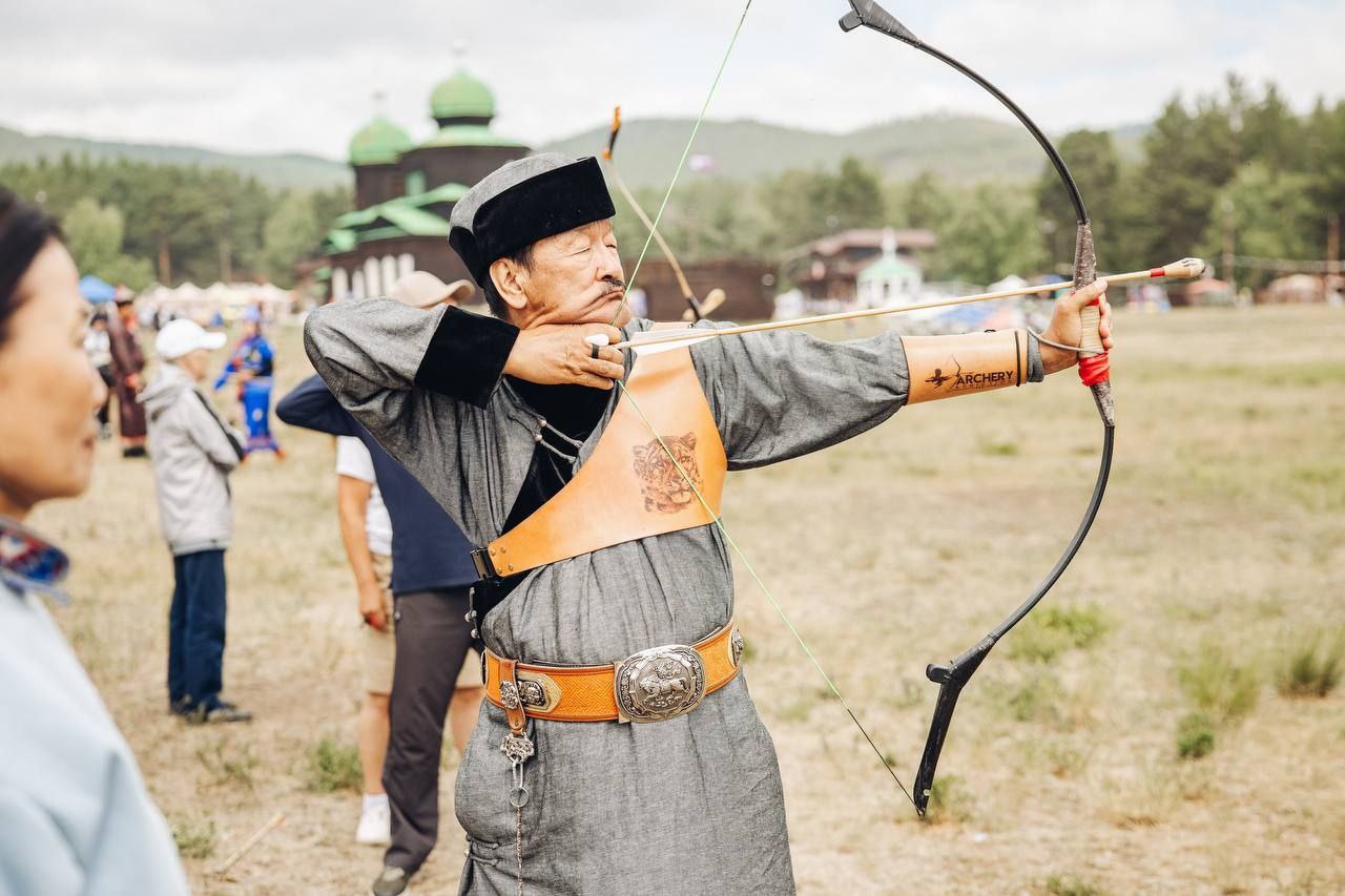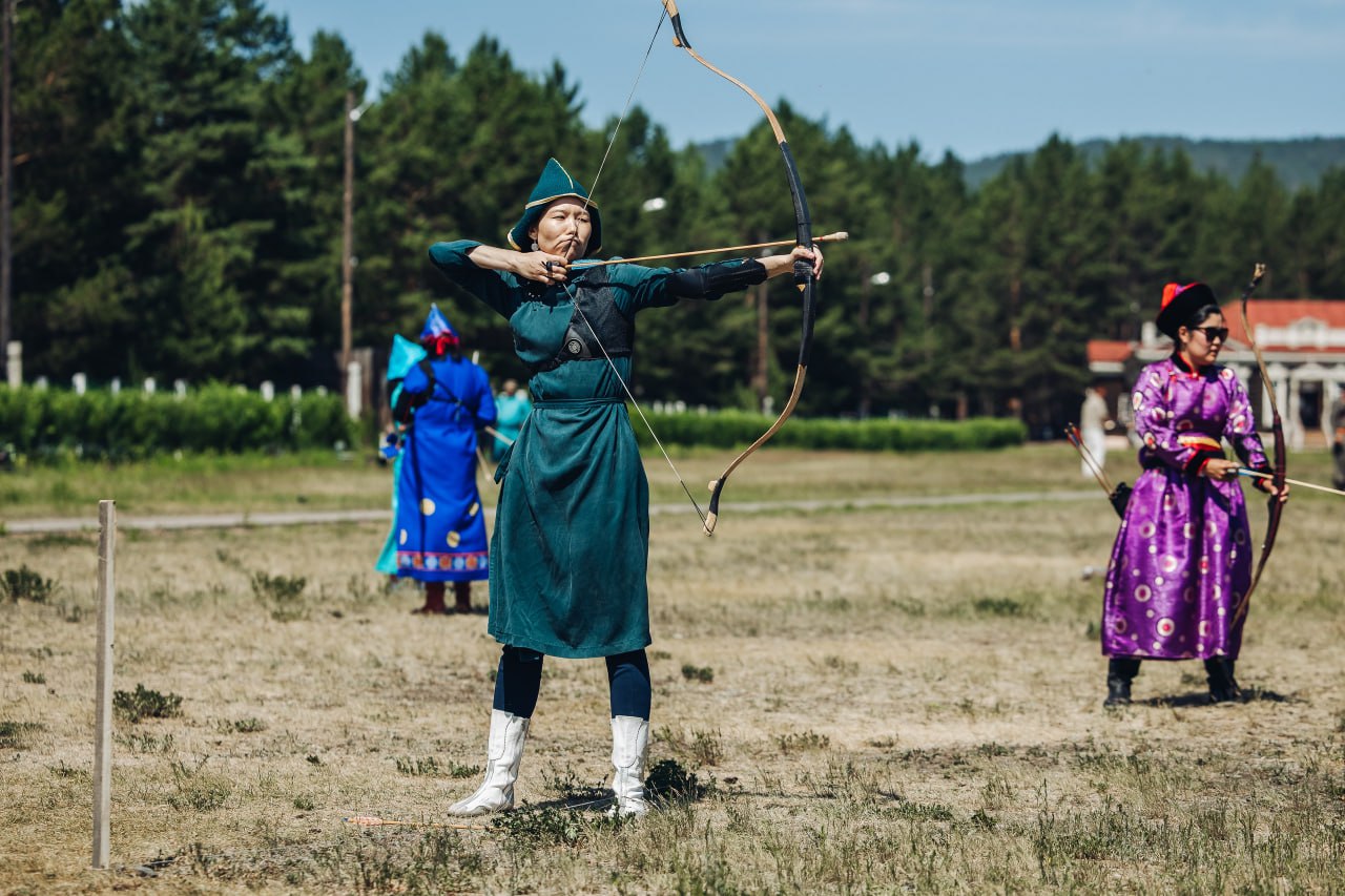 Одним из самых зрелищных состязаний является стрельба из традиционного бурятского лука, который делается из березы и покрывается пластинами из рога буйвола, а с внешней стороны для эластичности обклеивается конскими сухожилиями.