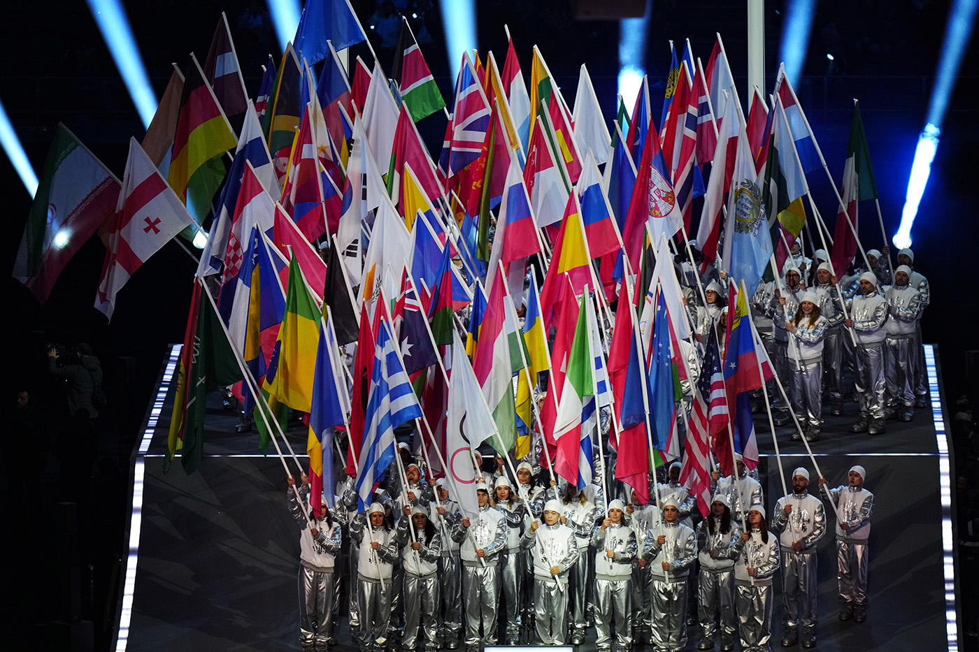 Впервые в истории Олимпиады парад спортсменов проходил одновременно в четырех местах — на стадионе «Сан-Сиро», в Кортина-д’Ампеццо, Ливиньо и Предаццо.