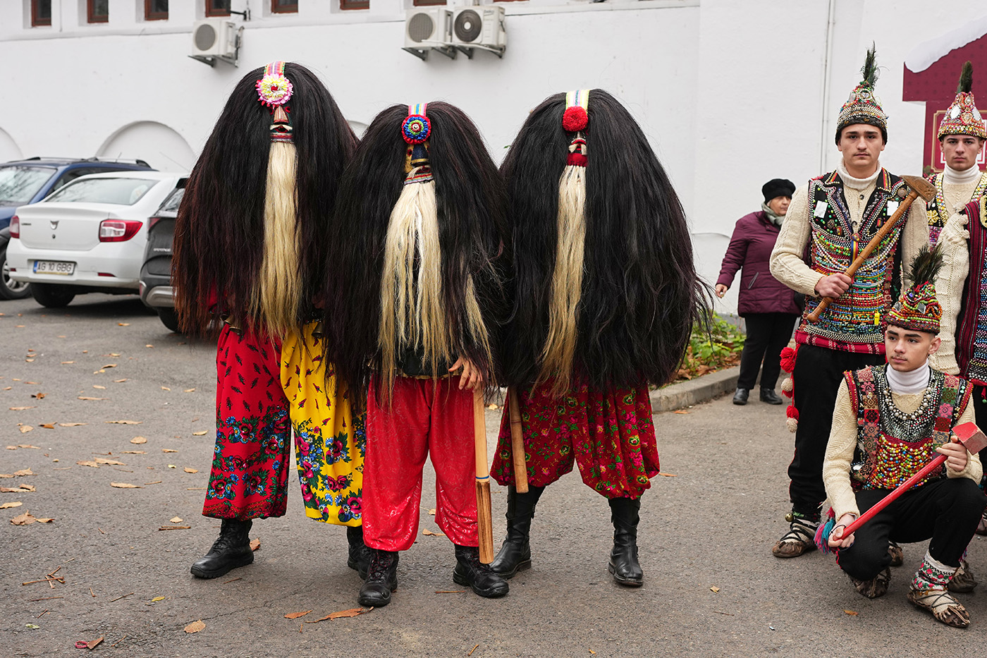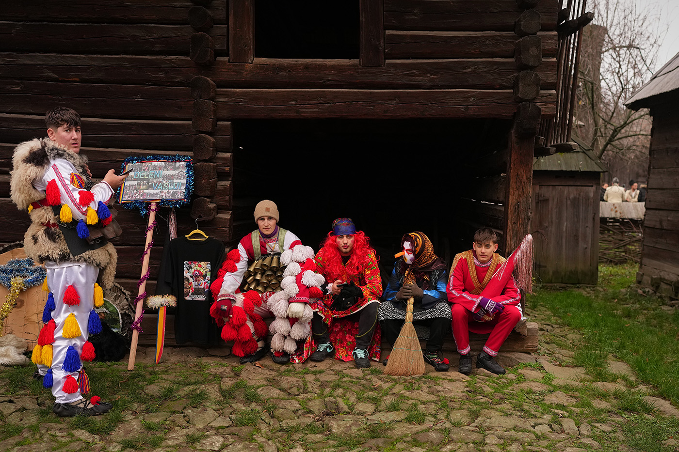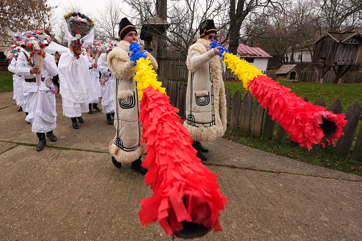 Члены фольклорных коллективов перед началом фестиваля рождественских и новогодних традиций в Национальном музее деревни имени Димитрие Густи в Бухаресте, Румыния