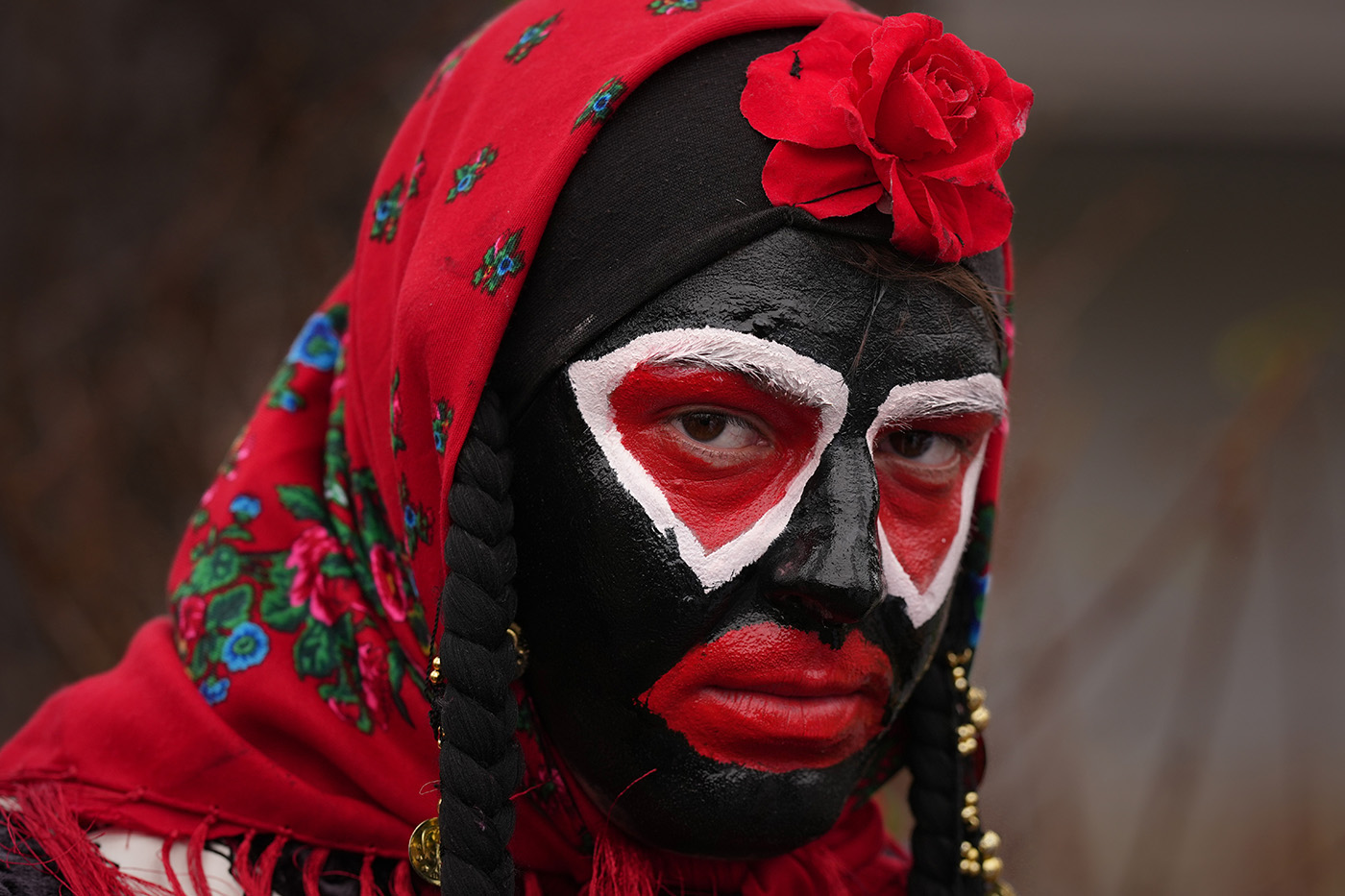 Члены фольклорных коллективов перед началом фестиваля рождественских и новогодних традиций в Национальном музее деревни имени Димитрие Густи в Бухаресте, Румыния
