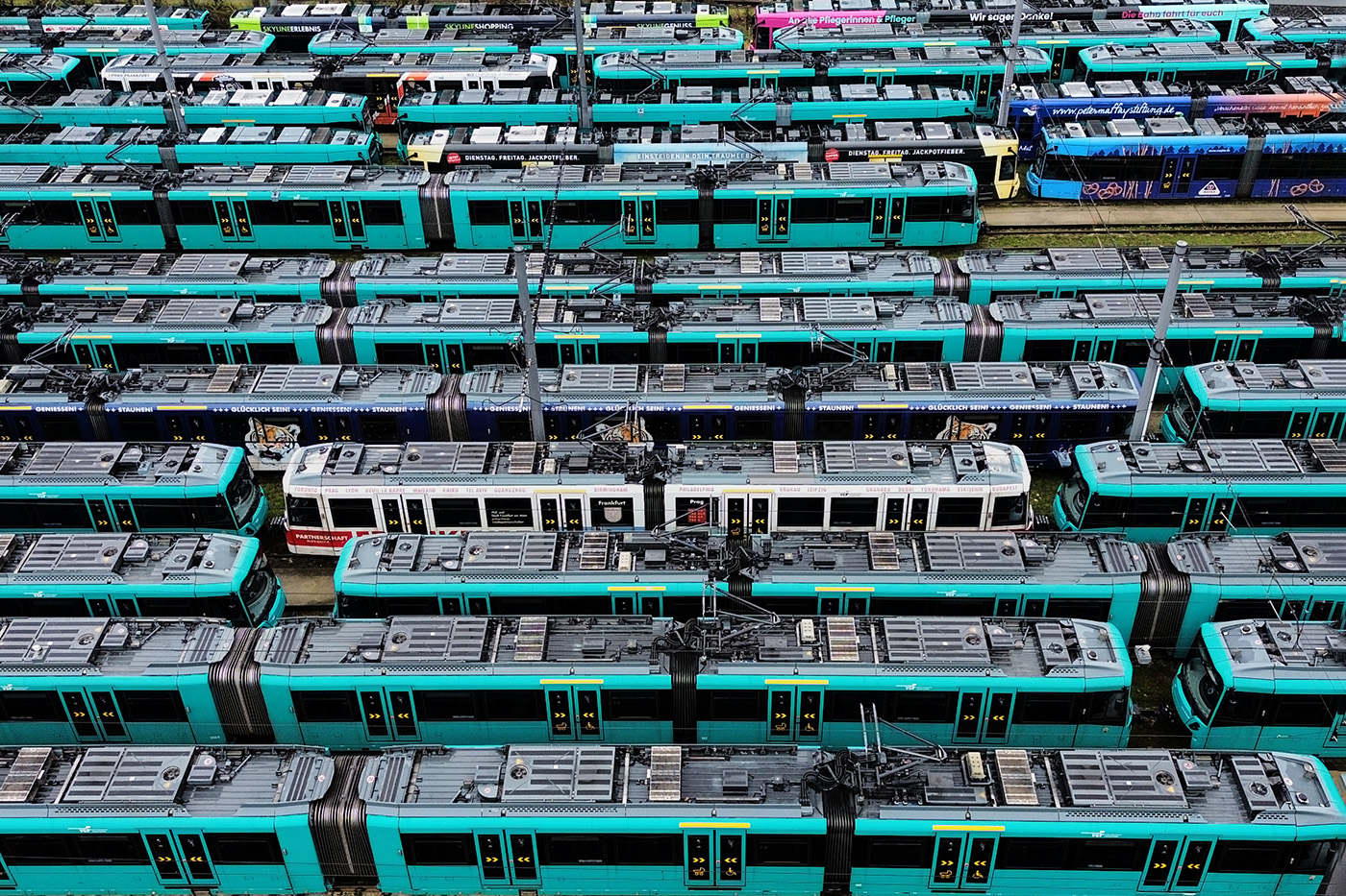 Поезда метро во время забастовки работников общественного транспорта во Франкфурте, Германия