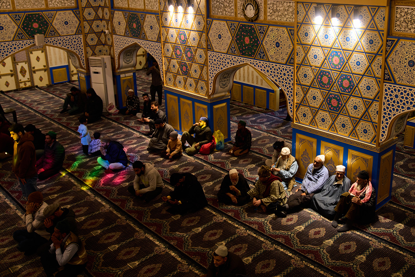Мусульмане молятся в святыне Хазратбал, где хранится волос из бороды пророка Мухаммеда. Сринагар, Кашмир, Индия