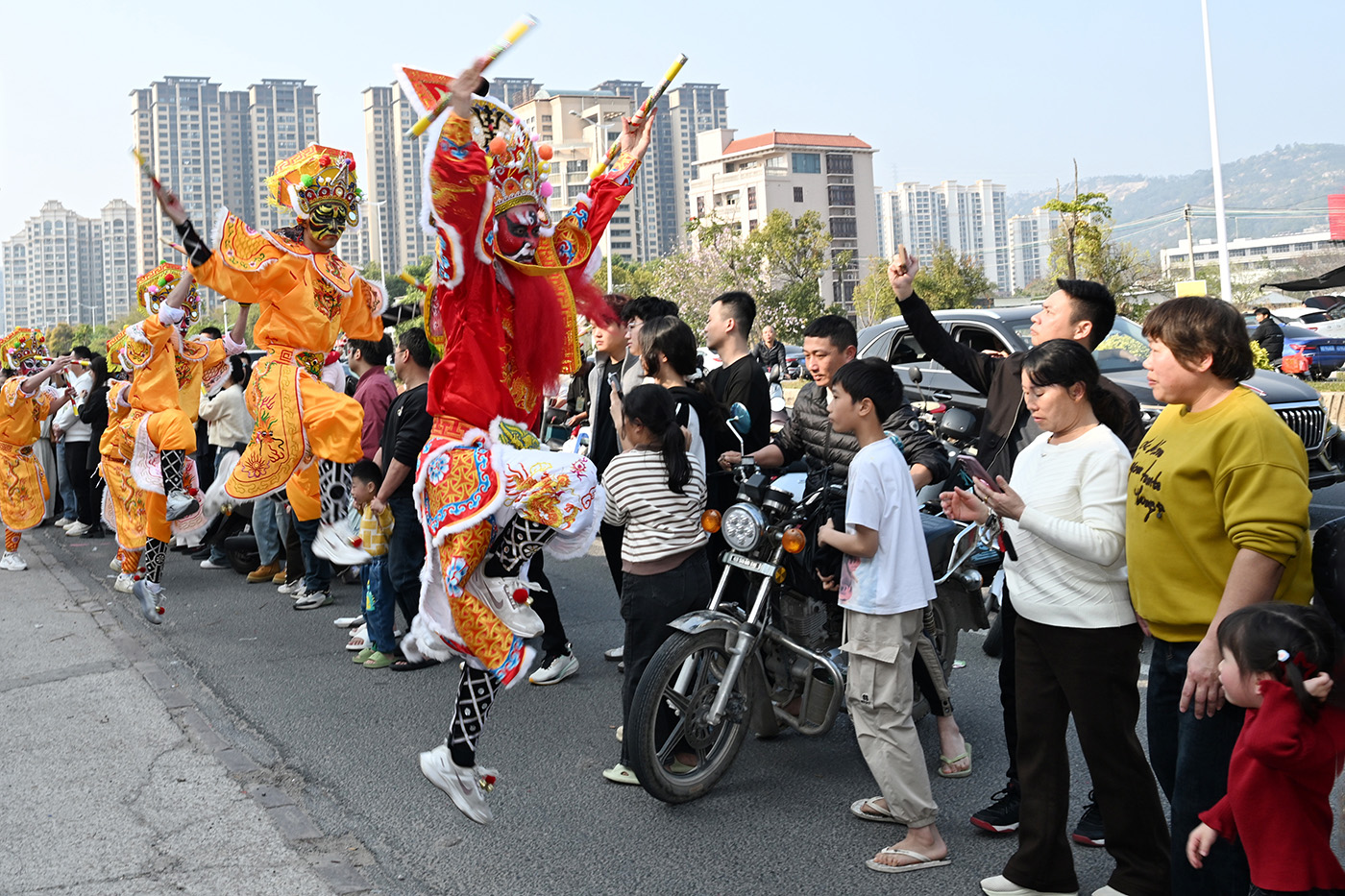 Артисты желают всем процветания танцем Инге, или «танцем под песню героя», в шестой день китайского Нового года в городе Шаньтоу провинции Гуандун