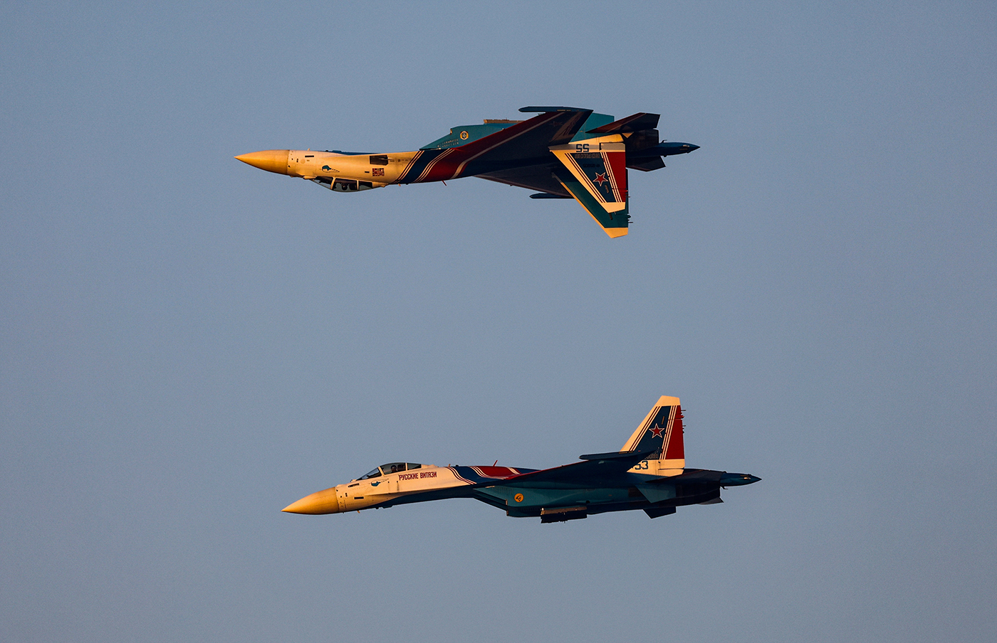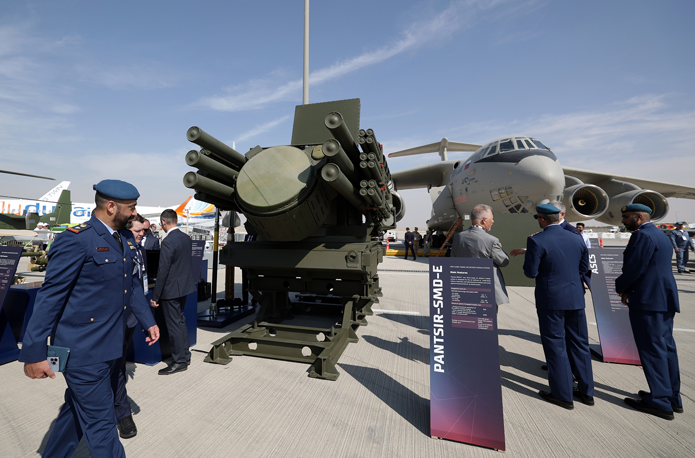 Российскую экспозицию, включающую 850 образцов военной техники, представляют такие компании, как «Объединенная авиастроительная корпорация» и «Рособоронэкспорт». Главным экспонатом стал многофункциональный истребитель пятого поколения Су-57Э, впервые показанный на Ближнем Востоке.