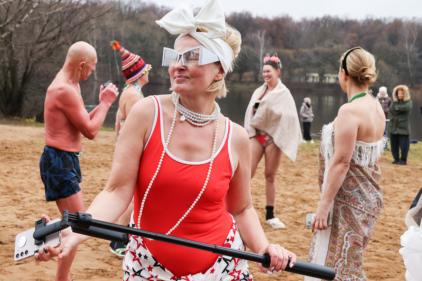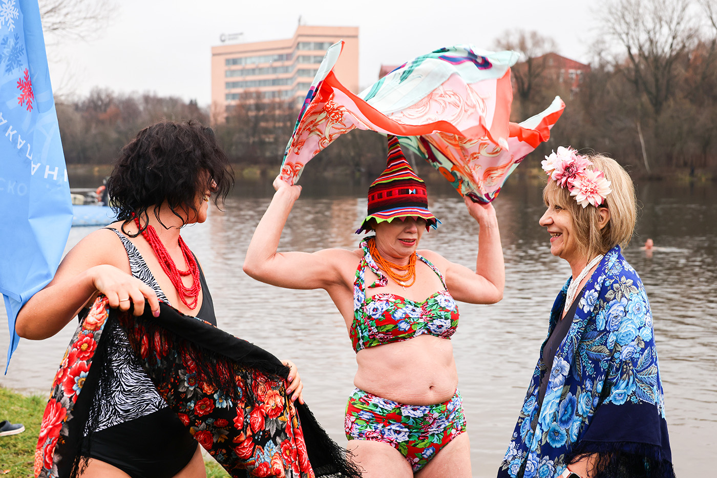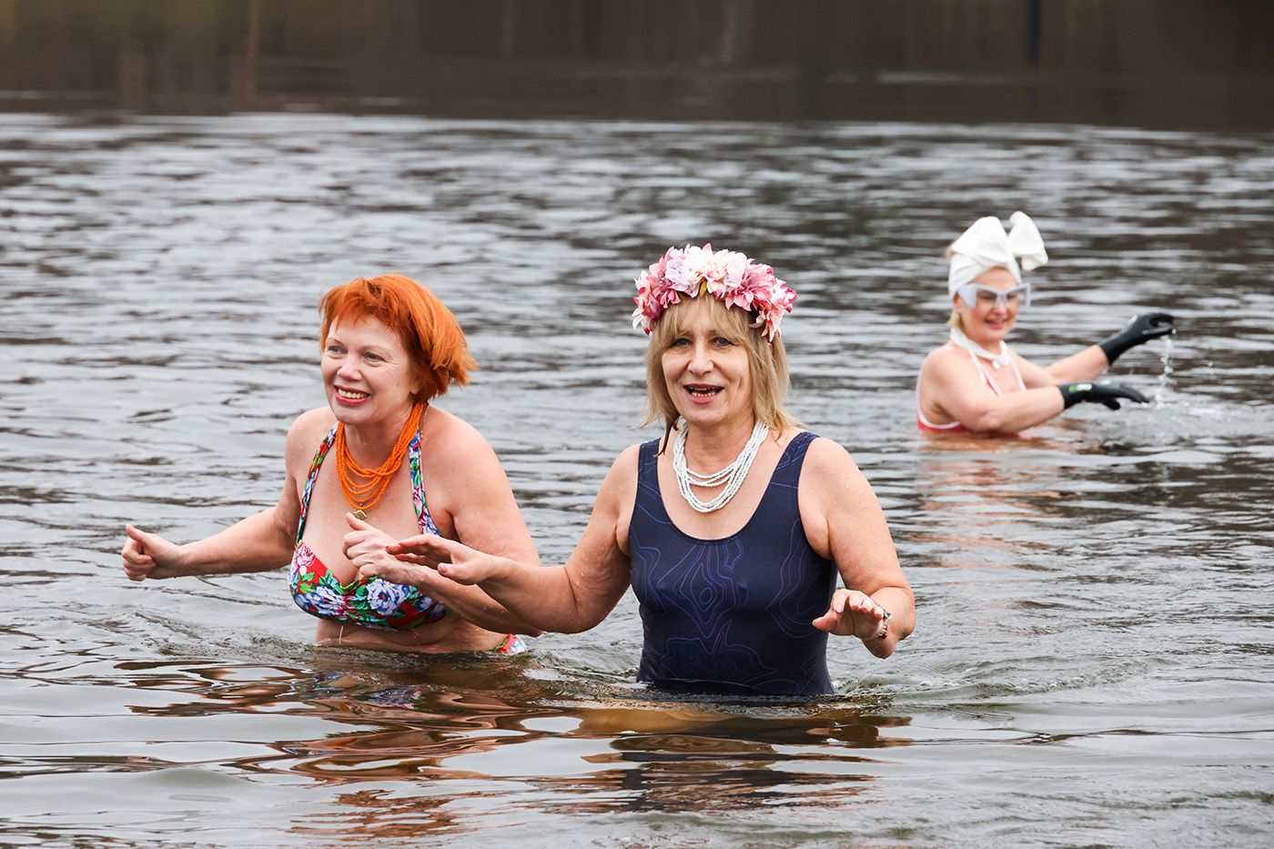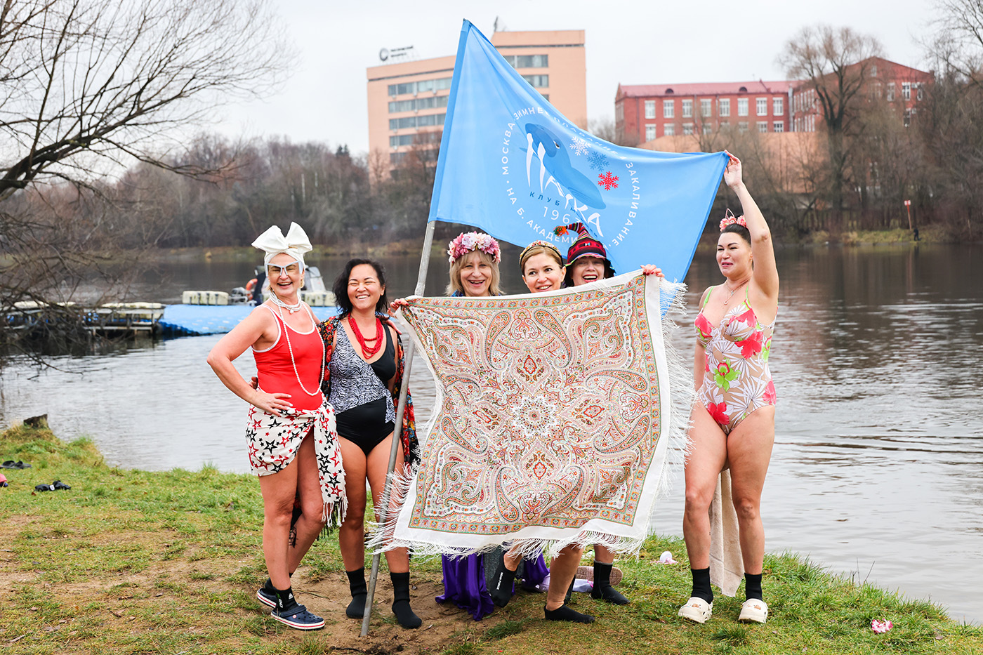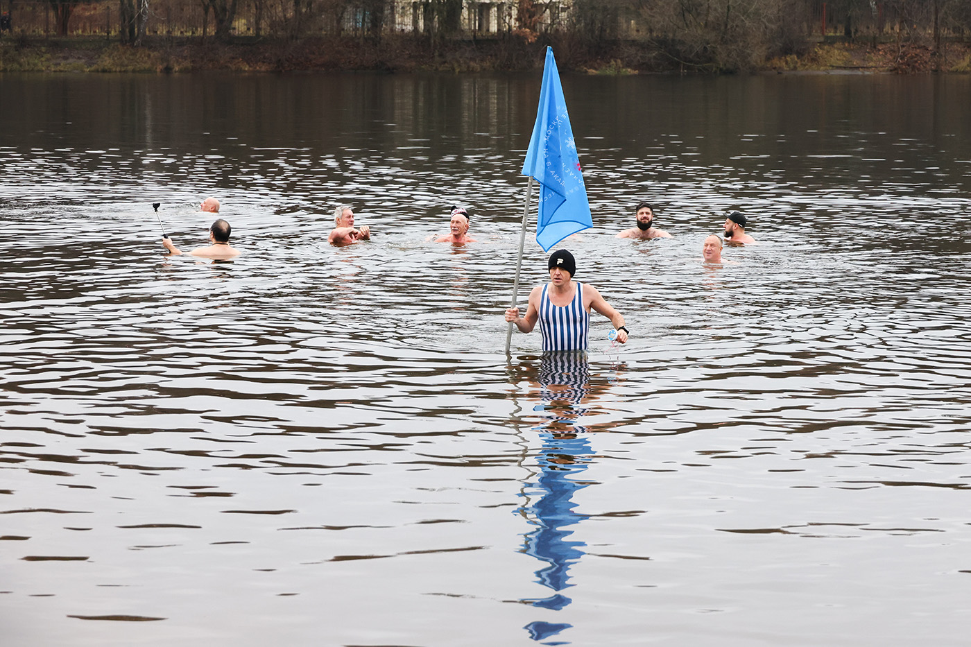 Участники клуба зимнего плавания «Наука» провели костюмированные заплывы на Большом Садовом пруду в Москве по случают открытия зимнего купального сезона, посвященного Дню моржа.