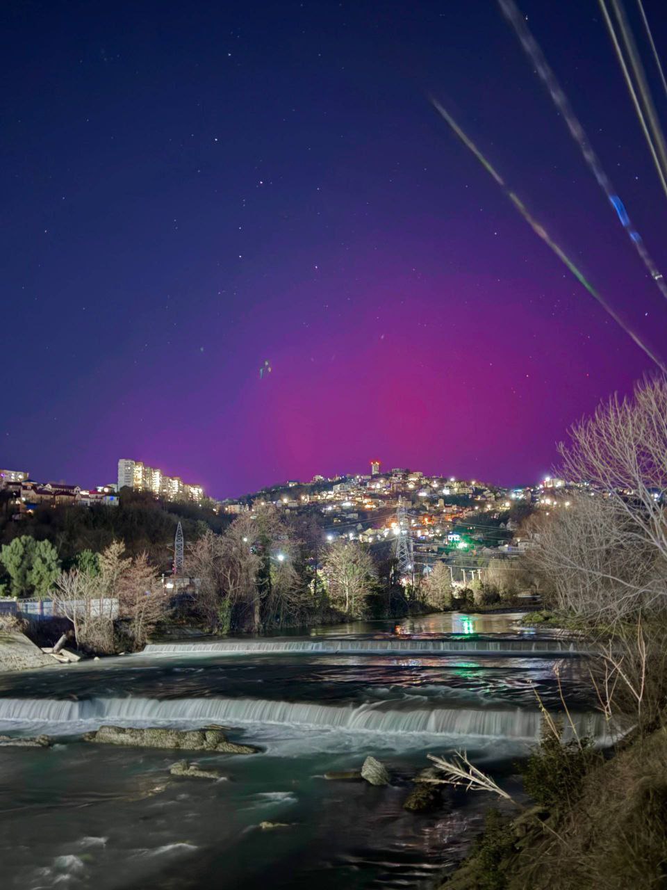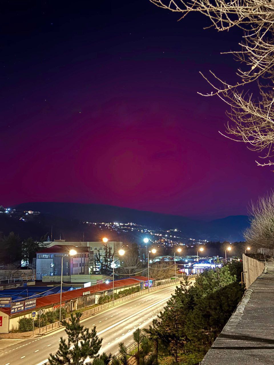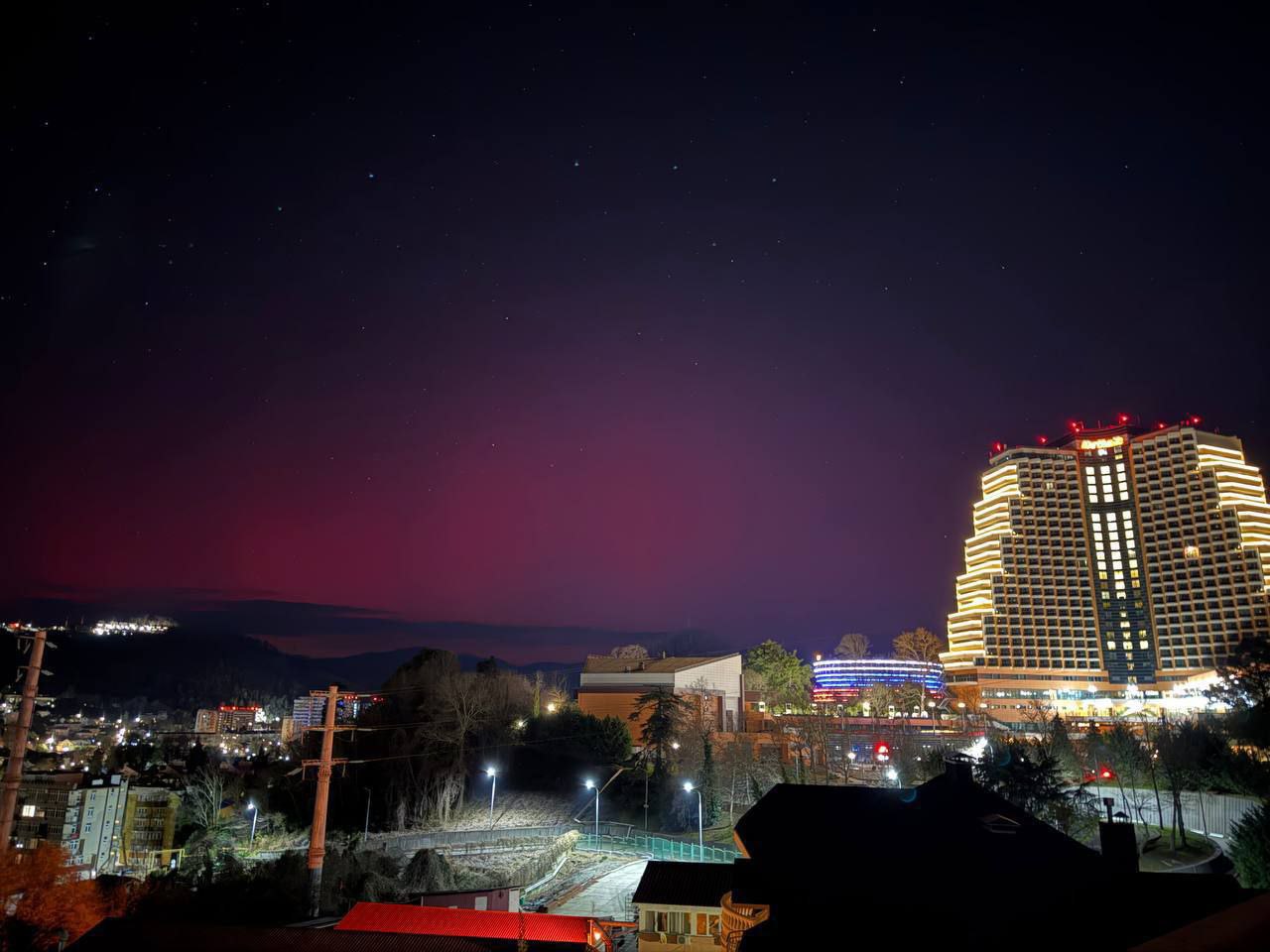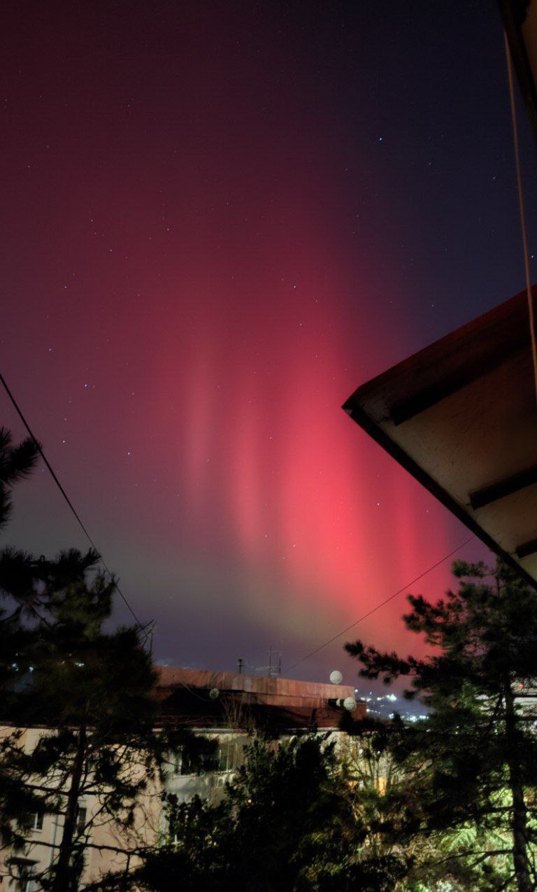 Мощная вспышка на Солнце стала причиной полярного сияния на юге России. Редчайшее явление можно было наблюдать в Краснодарском крае, включая субтропический Сочи, а также на побережье Крыма. Пользователи соцсетей опубликовали кадры, где видно, как небо переливается оттенками ярко-красного, розового и малинового цветов.