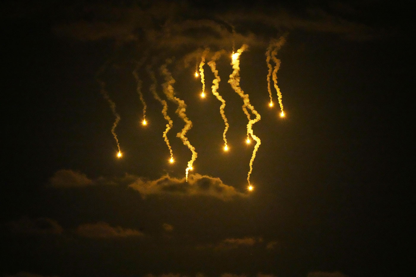 Осветительные ракеты, запущенные израильской армией, над Дейр-эль-Балахом в центральной части сектора Газа, 10 сентября 2025 года