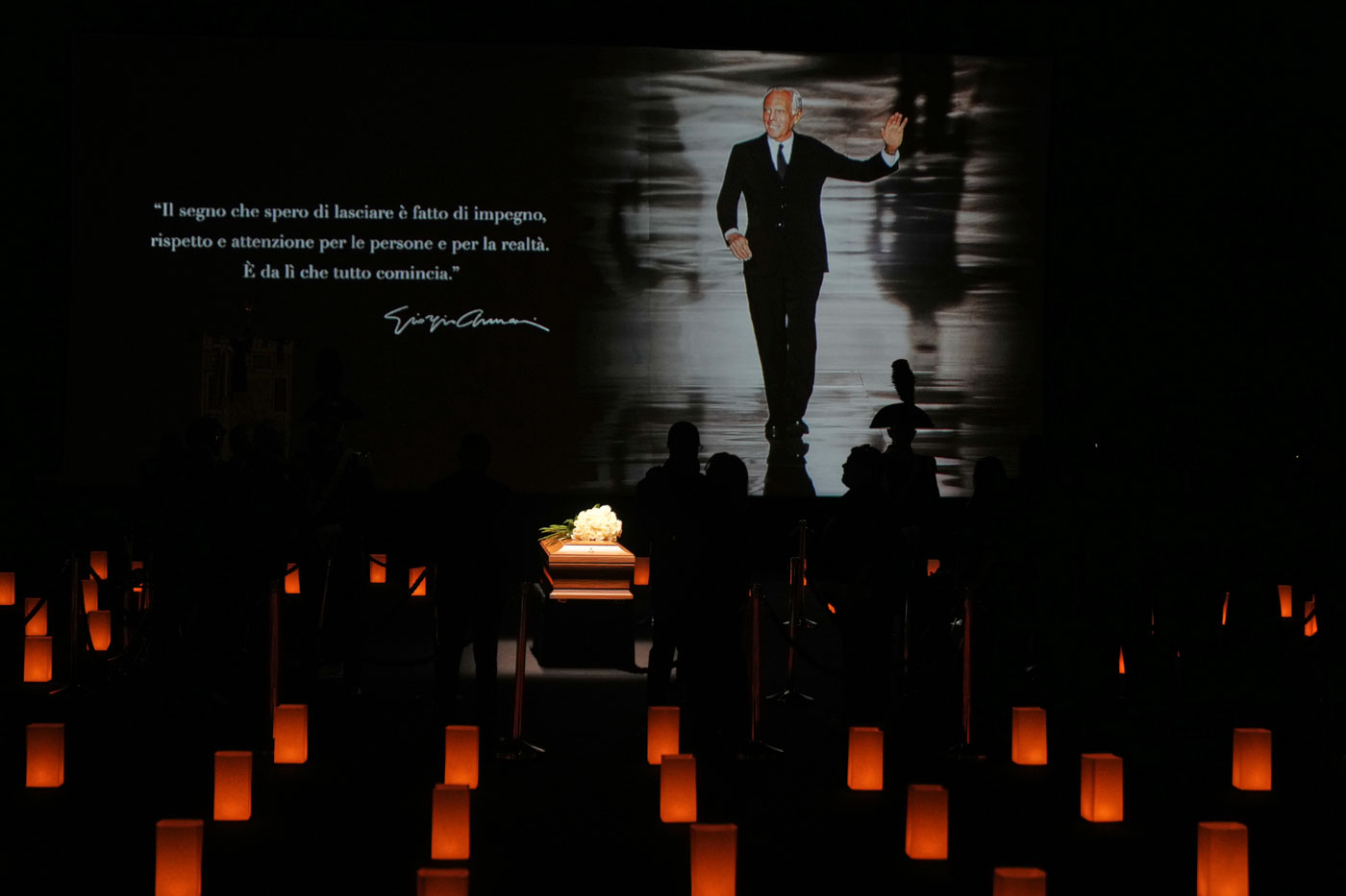 Церемония прощания со знаменитым модельером Джорджо Армани, в погребальной часовне в Armani / Teatro — выставочном пространстве при штаб-квартире модного дома, Милан, Италия, 6 сентября 2025 года