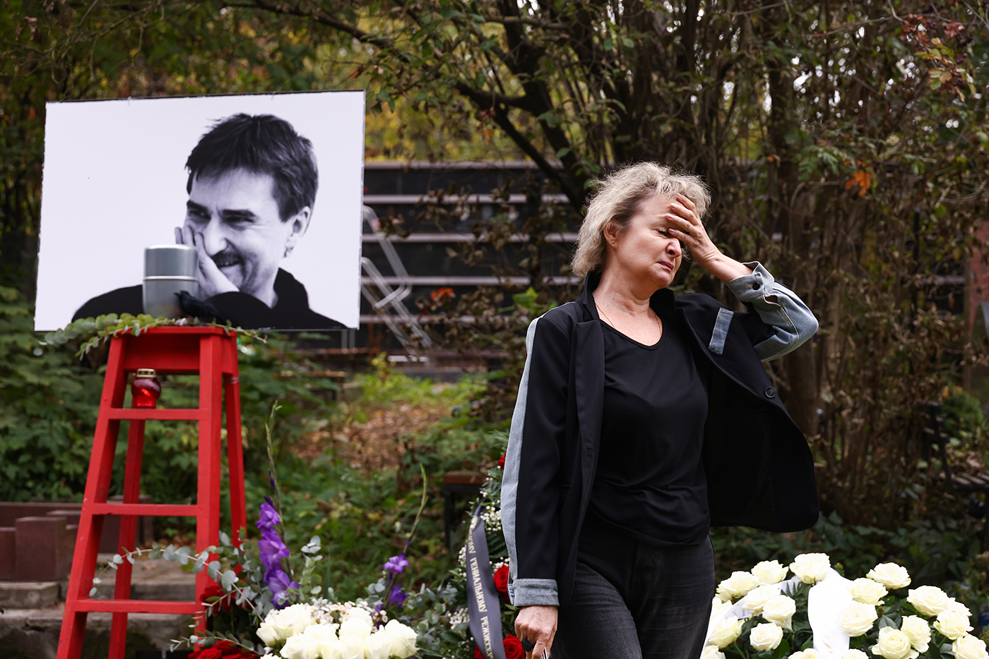 Актриса Анна Алексахина во время захоронения урны с прахом театрального режиссера Юрия Бутусова на Кунцевском кладбище. Постановщик погиб 9 августа в возрасте 63 лет. По предварительной версии, он утонул во время отпуска.