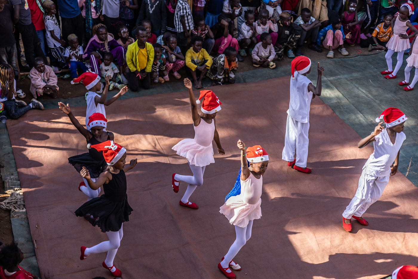 Рождественское настроение пришло в кенийский район Кибера вместе с уличным балетом: десятки детей в ярких костюмах и шапках Санта-Клауса выступили среди домов из листового металла. Мероприятие организовала Балетная школа Киберы, которая бесплатно обучает детей из малообеспеченных семей. В течение нескольких месяцев ученики репетировали в общественных залах, совмещая занятия с повседневными обязанностями. Для местных жителей спектакль стал символом сплоченности, таланта и надежды на будущее.