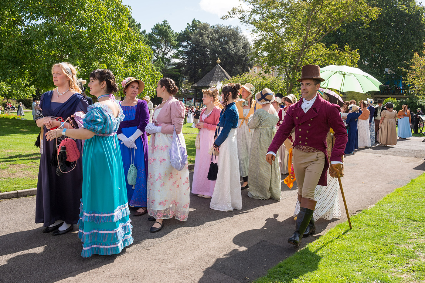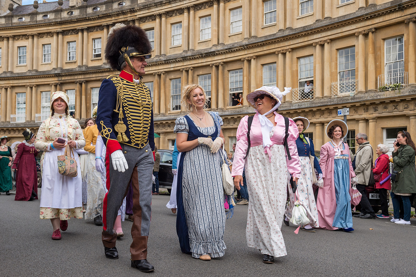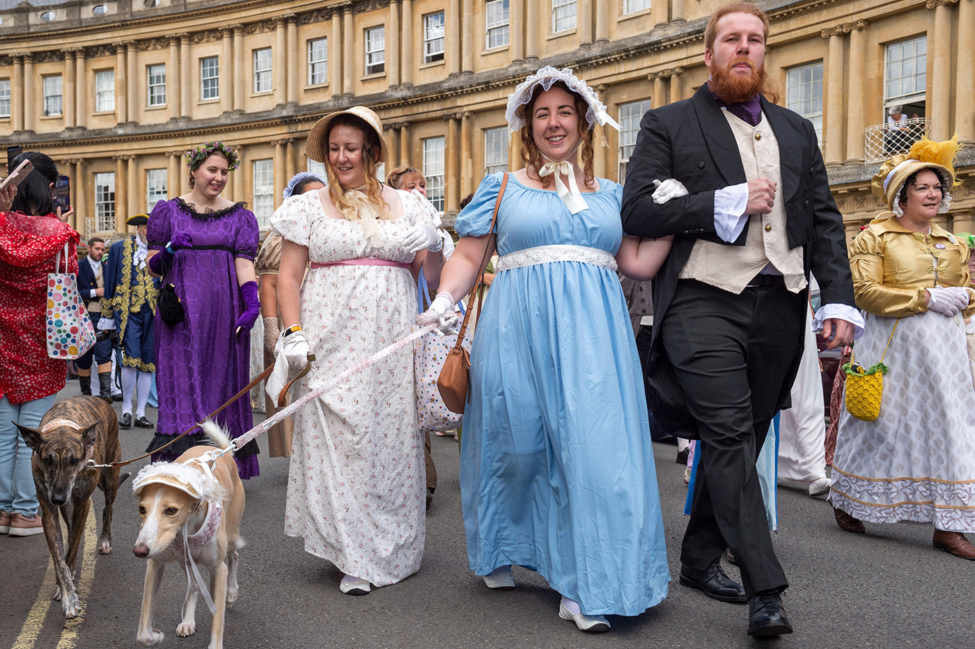 В британском Бате 14 сентября состоялся большой костюмированный променад эпохи регентства регентства будущего короля Георга IV, приуроченный к 250-летию со дня рождения Джейн Остин.
