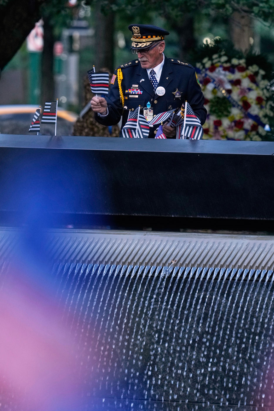 США, Нью-Йорк, 11 сентября 2025 года. Инсталляция «Дань свету» освещает небо над нижним Манхэттеном и зданием One World Trade Center позади Статуи Свободы накануне 24-й годовщины терактов 11 сентября в New York City.