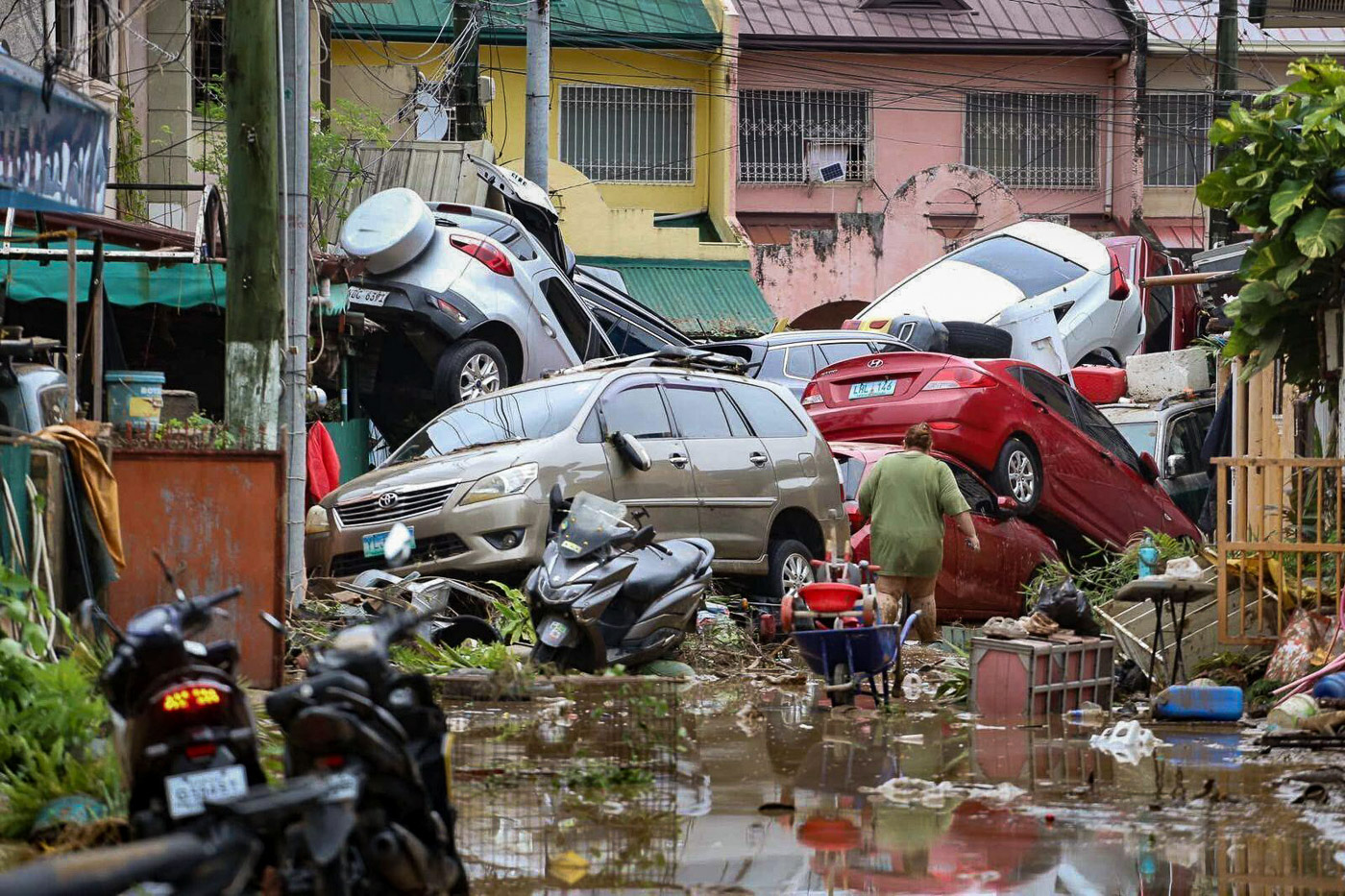 Улицы филиппинского города Себу завалены автомобилями после тайфуна «Калмаэги»