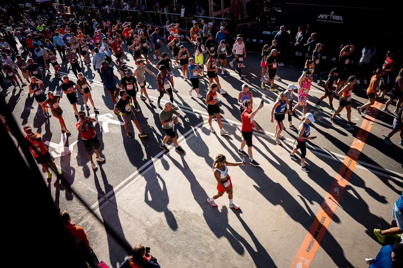 Бегуны пересекают финишную черту Нью-Йоркского марафона в Центральном парке