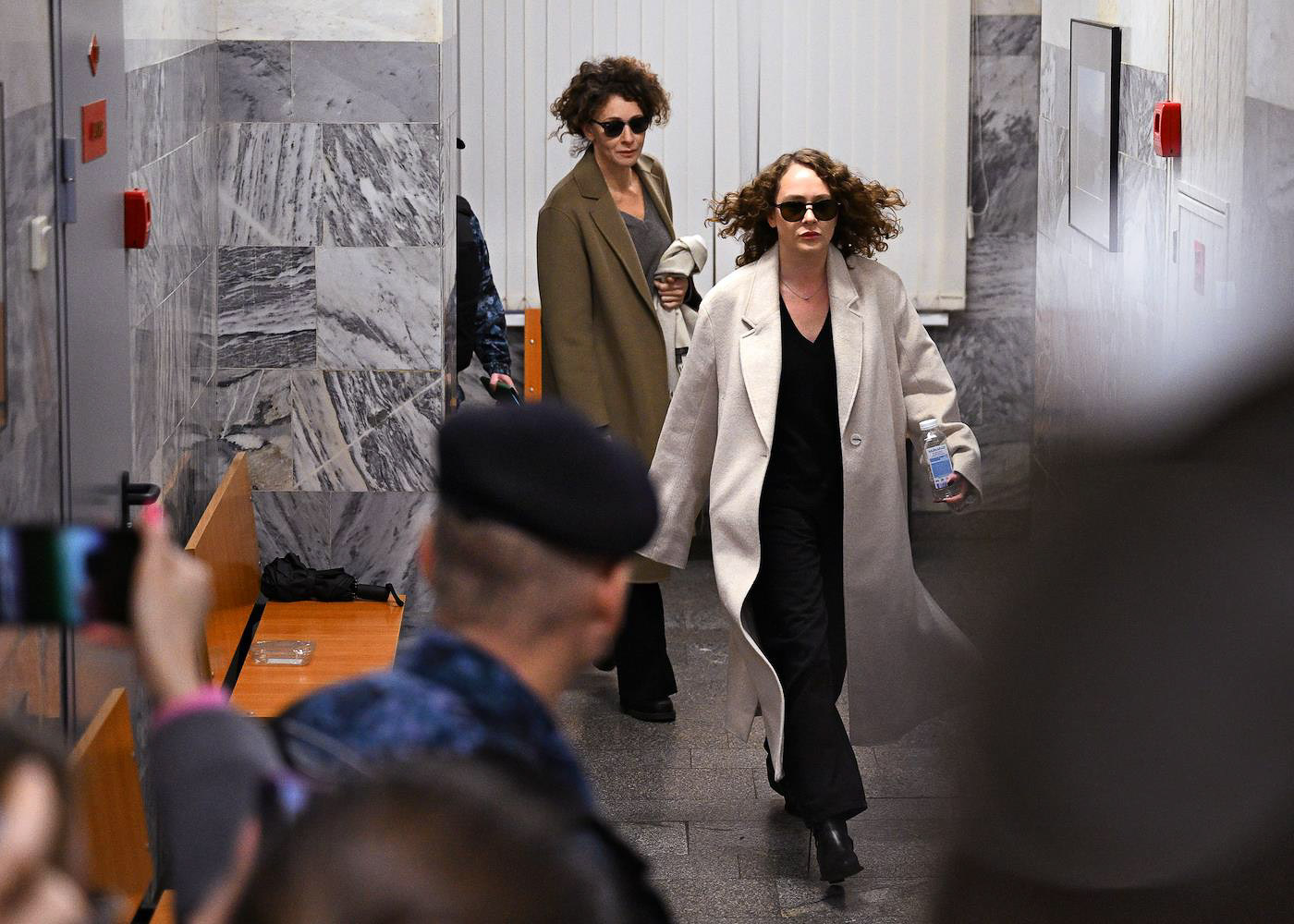 Обвиняемая в контрабанде наркотиков актриса Аглая Тарасова (справа) и ее мать Ксения Раппопорт (слева) перед заседанием Домодедовского городского суда