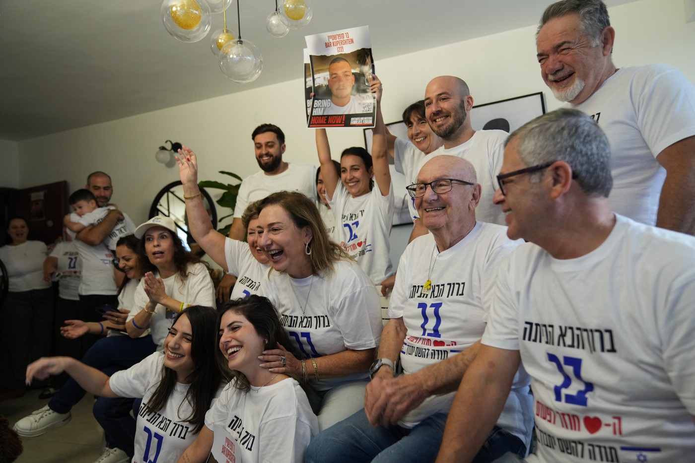Семья и друзья израильского заложника Бара Куперштейна ждут его освобождения в Холоне, Израиль