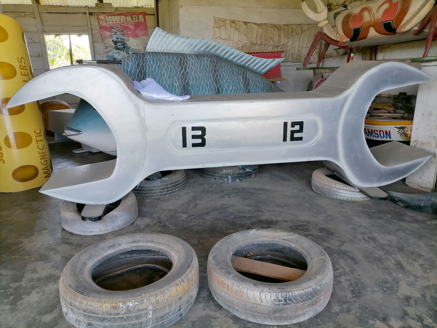 Фантазийные гробы, также известные как фигурные гробы, в виде гаечного ключа, Аккра, Гана, 27 октября 2022 года