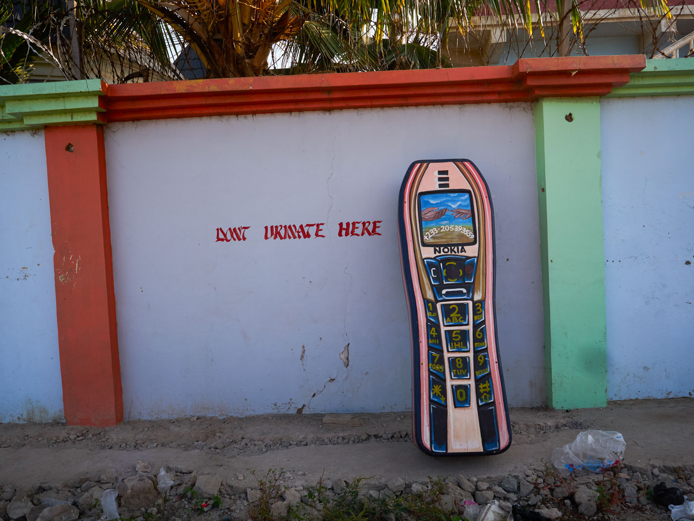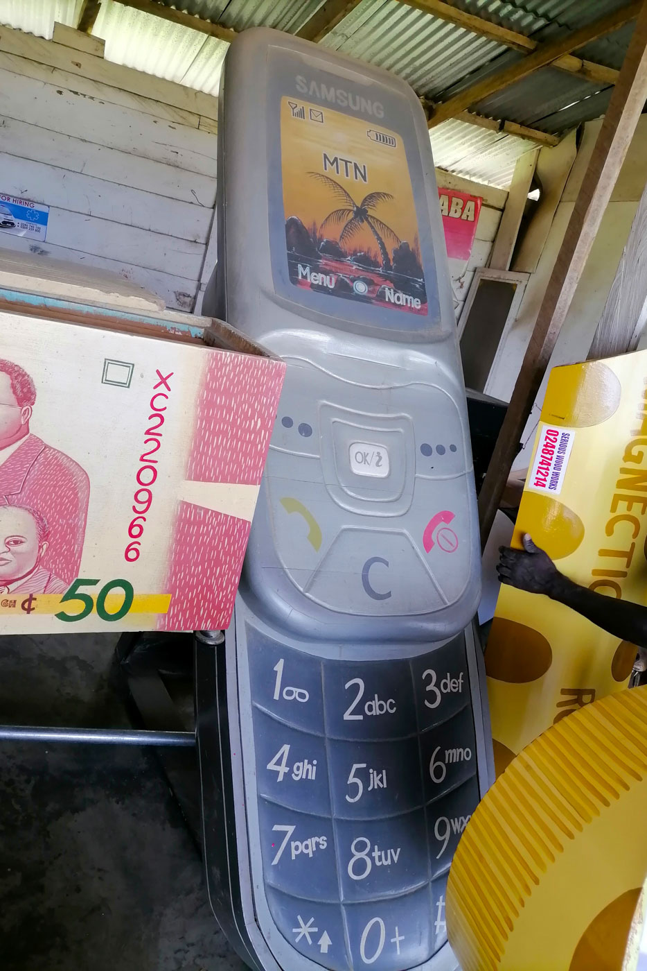 Фантазийный гроб в виде телефона Nokia, спроектированный Эриком Кпакпо Адотеем и раскрашенный Джозефом Аджетеем Сова, Аккра, Гана, 21 июня 2019 года