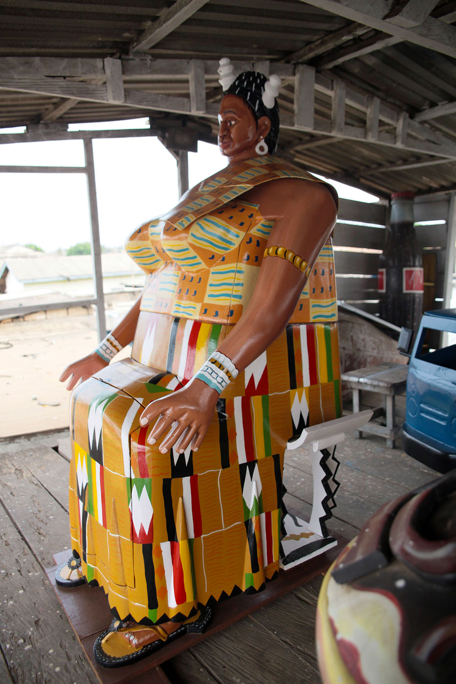 Гроб, изображающий ганскую женщину в традиционном наряде, на выставке в магазине Hello Fantastic в Теши, Аккра, Гана, 25 июля 2018 года